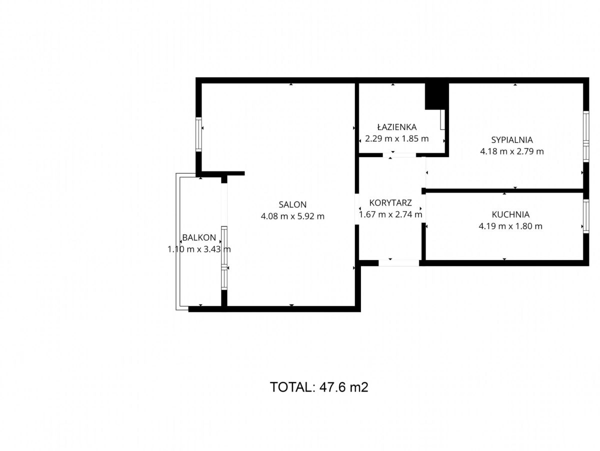 - Powierzchnia: 47.6 m2