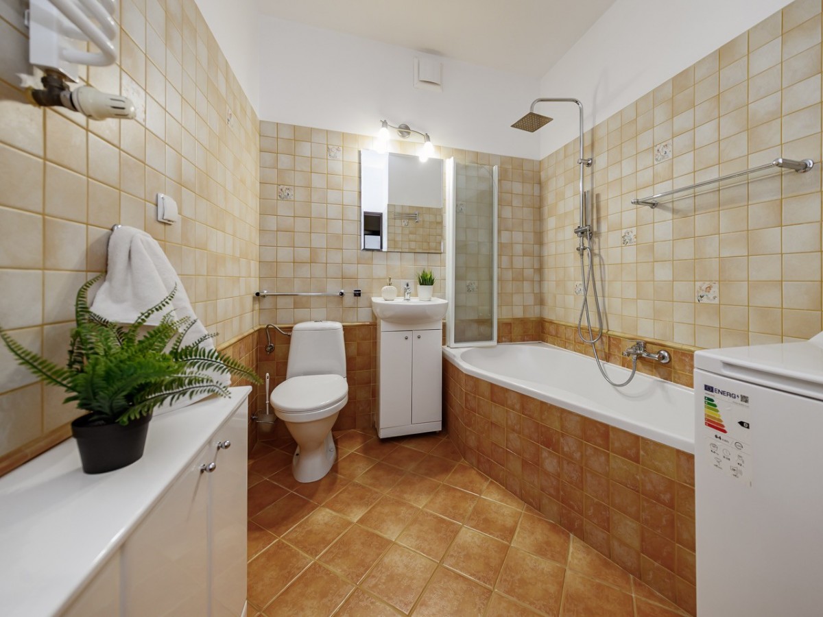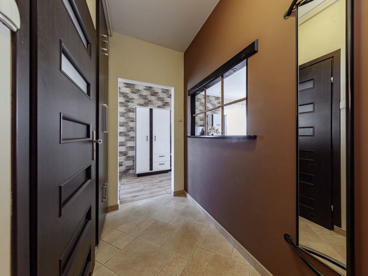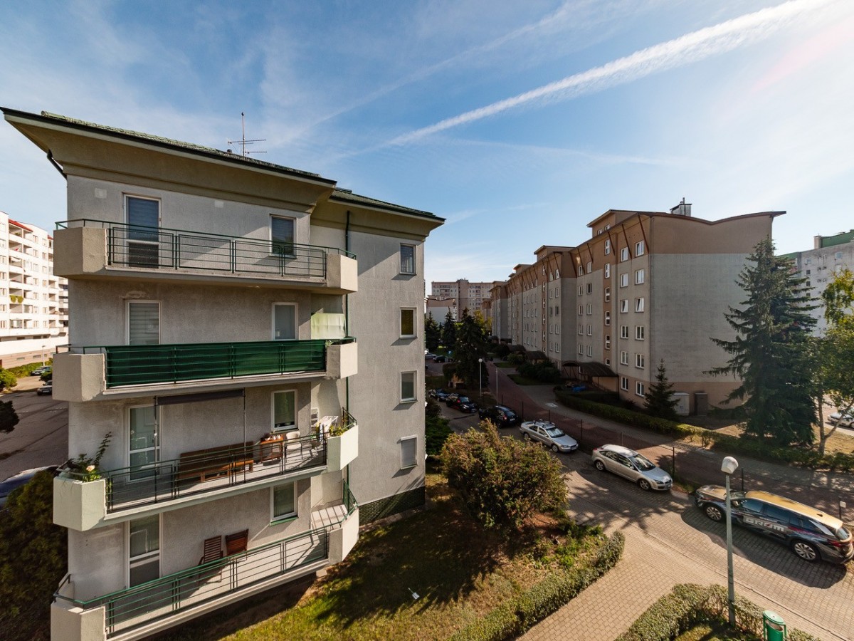 Centralną częścią mieszkania jest salon z wyjściem na spory balkon, kuchnia jest otwarta i widna, w łazience znajduje się wanna z parawanem prysznicowym a w przedpokoju spora szafa.