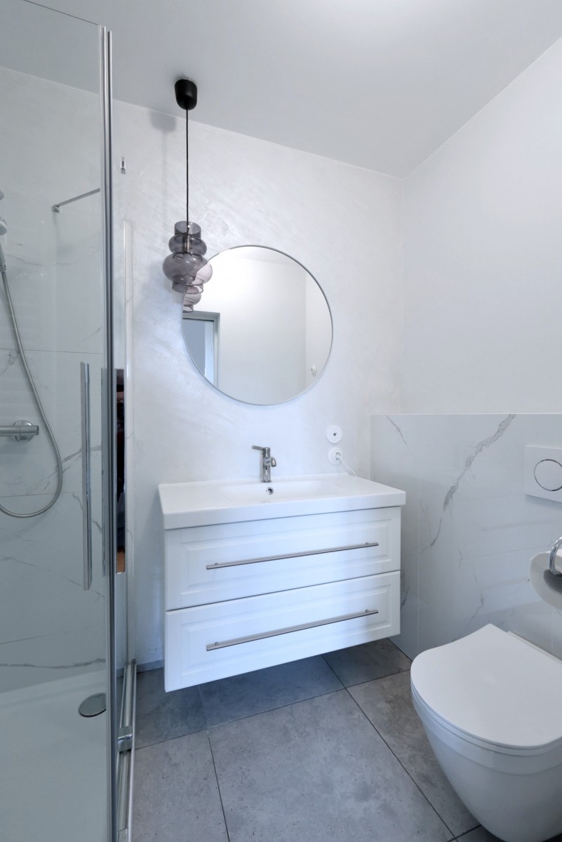 - przestronny salon z aneksem kuchennym z oknem (45,8m²) z bezpośrednim wyjściem do ogrodu od strony południowej.