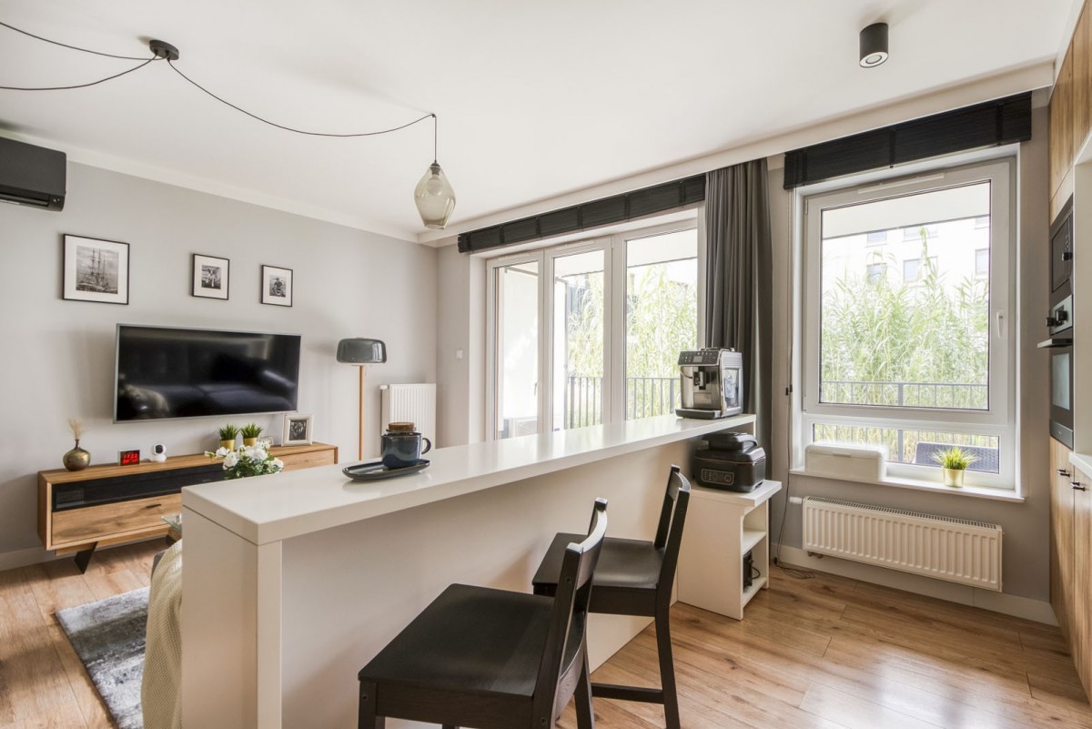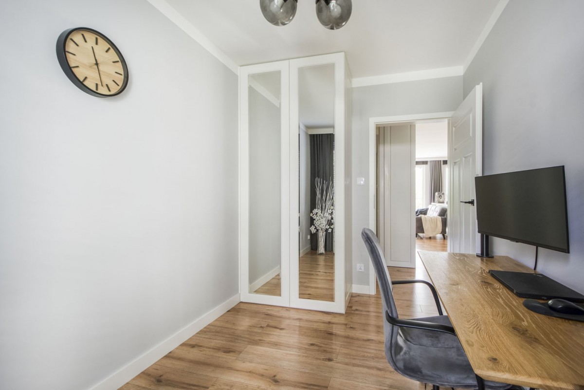 Zdecydowanie stan i jakość wykończenia. Lokal został urządzony z dbałością o detale, przy użyciu materiałów wysokiej klasy - na podłogach eleganckie panele o podwyższonej odporności, w kuchni i łazience gres, nowoczesna armatura oraz zabudowa kuchenna wykonana na wymiar. Mieszkanie jest w idealnym stanie technicznym, nie wymaga żadnych nakładów finansowych - gotowe do wprowadzenia od zaraz.