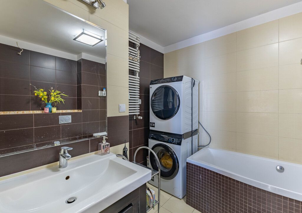 The apartment comes with two parking spaces in the underground garage for PLN 50,000 each. An additional advantage is a large 9.6m² balcony.