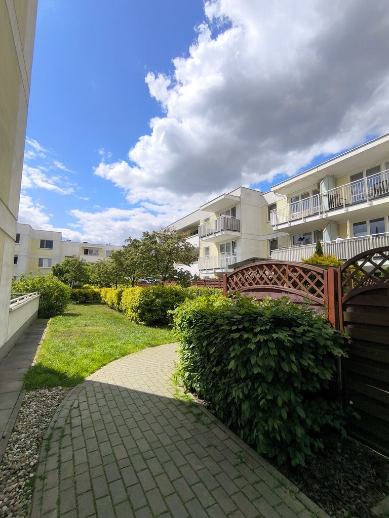 - zadbany ogródek o powierzchni 19,38 m² z ekspozycją południowo-zachodnią – gwarantującą doskonałe nasłonecznienie i widok na wewnętrzne, zielone patio osiedla.