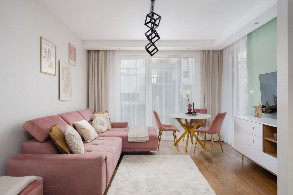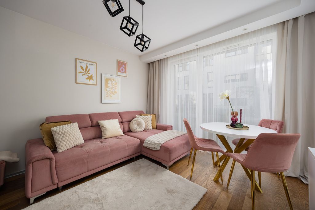 Gotowe do zamieszkania, urządzone w wysokim standardzie, trzypokojowe mieszkanie na parterze z ogródkiem w dwupiętrowym nowoczesnym budynku z 2018 roku. Mieszkanie usytuowane jest na warszawskiej Białołęce przy ul. Sprawnej 7D