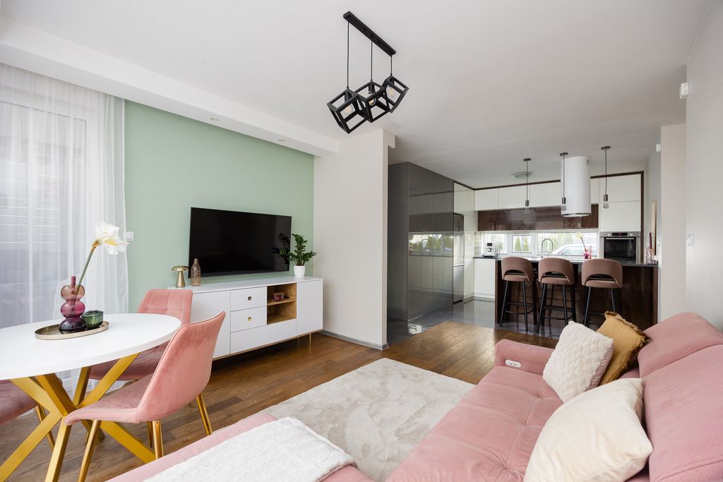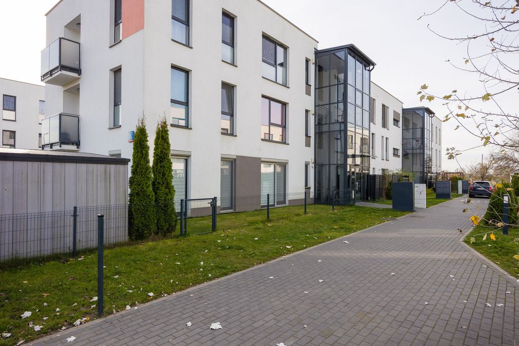 Mieszkanie idealne dla singli, par, rodzin i osób ceniących przestrzeń i komfort; w bardzo dobrym stanie wizualnym i technicznym, kupione od dewelopera w 2018 roku i wykończone z wykorzystaniem wysokiej jakości materiałów. Drzwi wejściowe antywłamaniowe, domofon. Dużą ilość naturalnego światła zapewnia południowa ekspozycja oraz spore przeszklenia. Na podłodze w salonie i sypialniach wysokiej klasy deska podłogowa; w kuchni i łazience gres. Z salonu wyjście na słoneczny taras i ogród; salon podzielony jest na strefę wypoczynkową oraz jadalnianą ze stołem znajdującym się blisko okna tarasowego. Widna kuchnia z meblami na wymiar, markowym sprzętem AGD oraz blatami wykonanymi z naturalnego kamienia. W przytulnej sypialni stylowe meble wykonane na wymiar przez pracownię stolarską. W łazience znajduje się duża kabina prysznicowa, meble i WC. Dużym atutem mieszkania jest duży ogródek z miejscem na przechowywanie dodatkowych rzeczy.