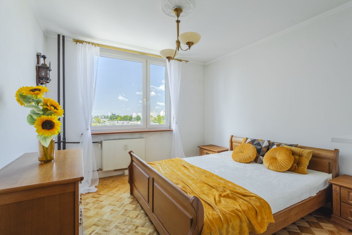 Mieszkanie ma świetny rozkład, jest dwustronne, składa się z salonu z wyjściem na loggię, z dwóch sypialni, oddzielnej kuchni, łazienki, wc oraz z przedpokoju. Z okien mamy widok na panoramę Tarchomina.