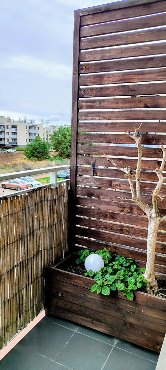 Duży balkon z widokiem na przestrzeń przed osiedlem - powierzchnia 10,5m2.