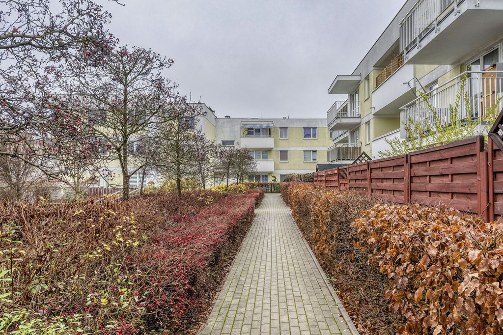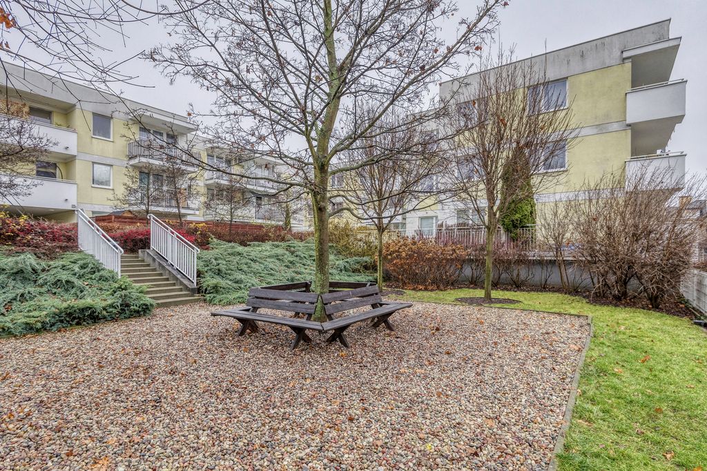 - zadbany ogródek o powierzchni 19,38 m² z ekspozycją południowo-zachodnią – gwarantującą doskonałe nasłonecznienie i widok na wewnętrzne, zielone patio osiedla.
