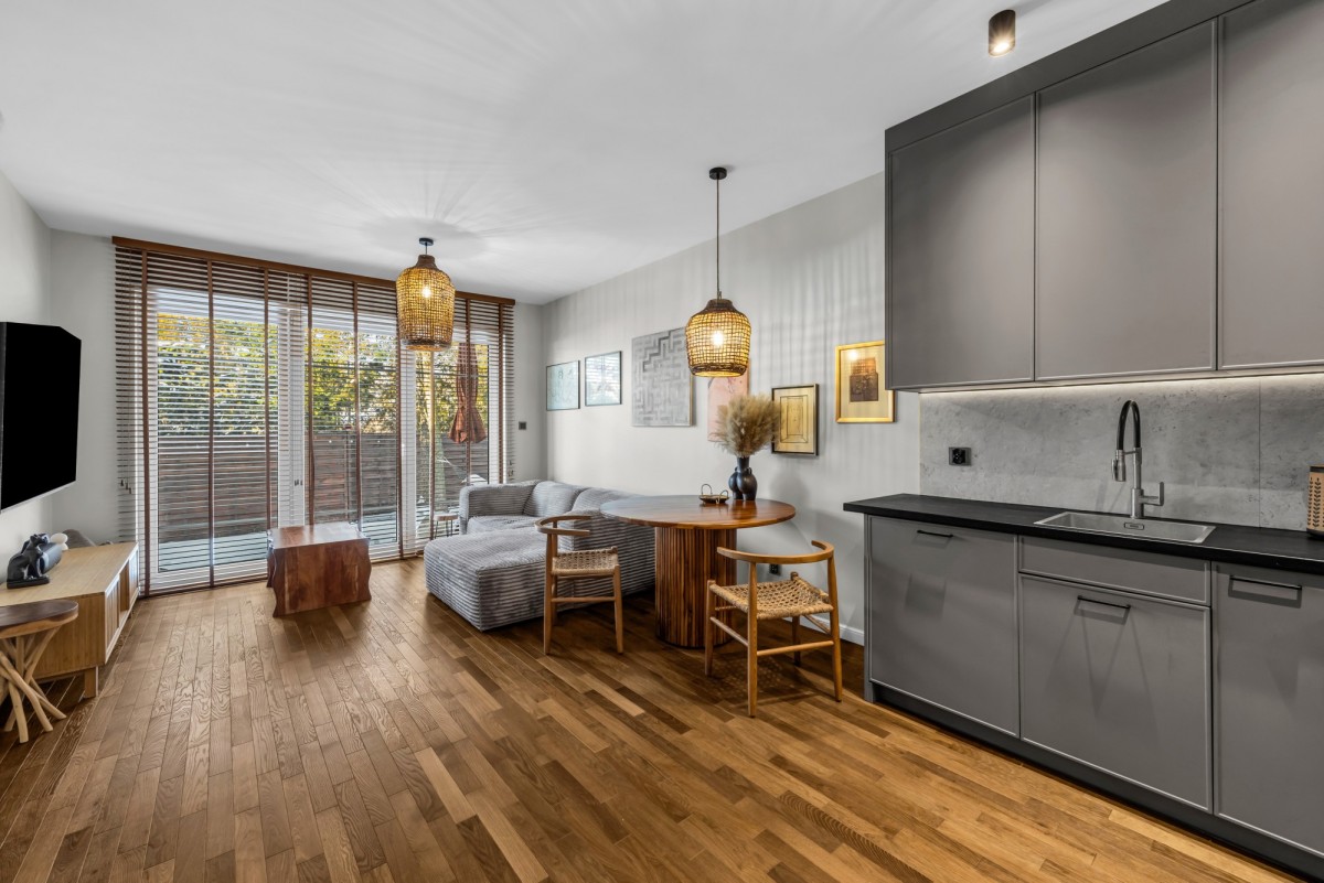 - przestronny salon z aneksem kuchennym i wyjściem do prywatnego ogródka (ok. 60 m²)