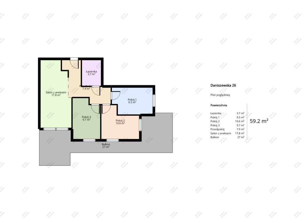 - Powierzchnia: 59.23 m2