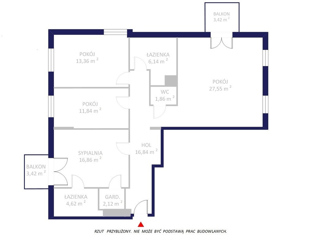 - sypialnia master (16,86 m²) z prywatną łazienką, garderobą i balkonem
