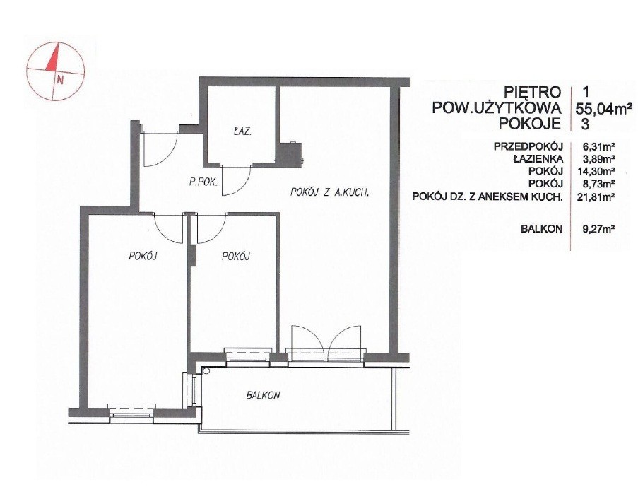 - Powierzchnia: 55.04 m2