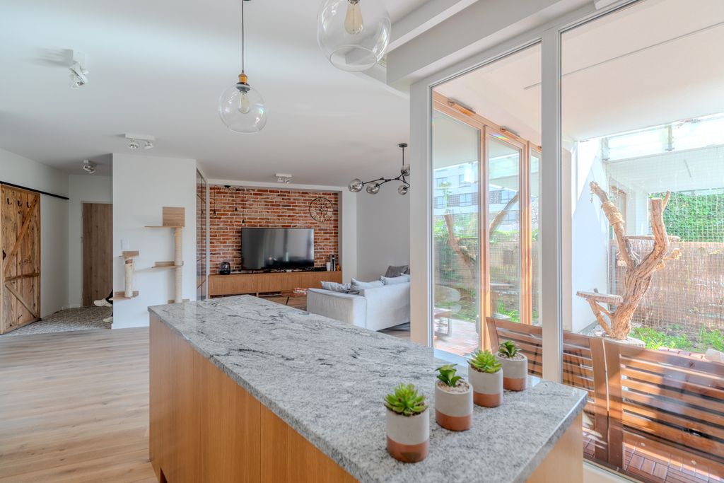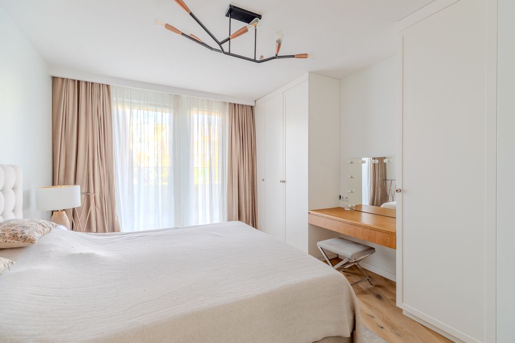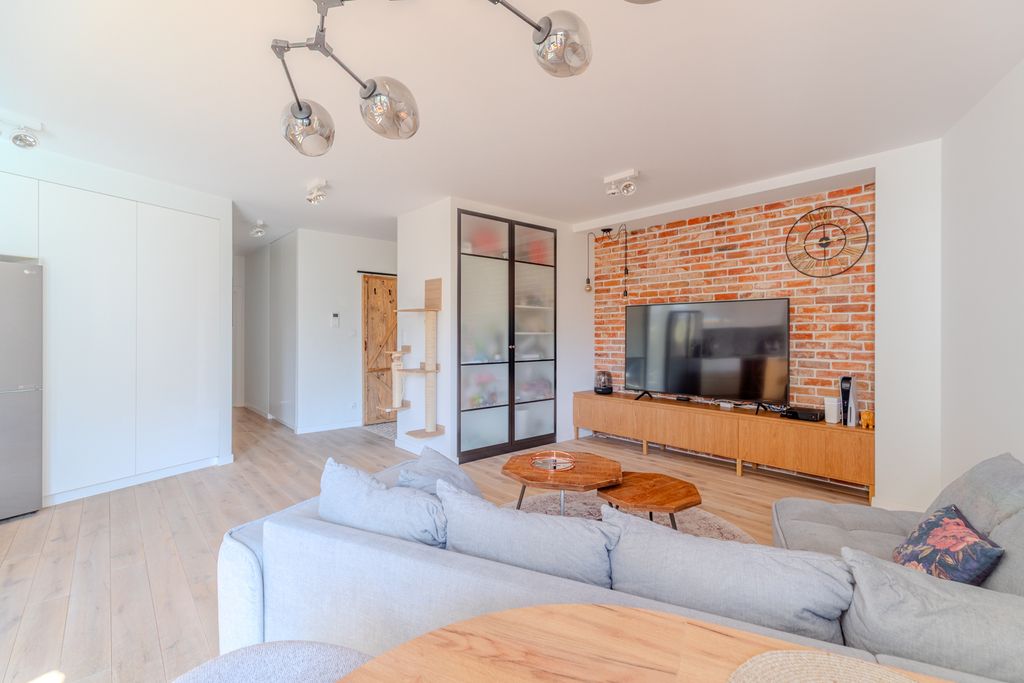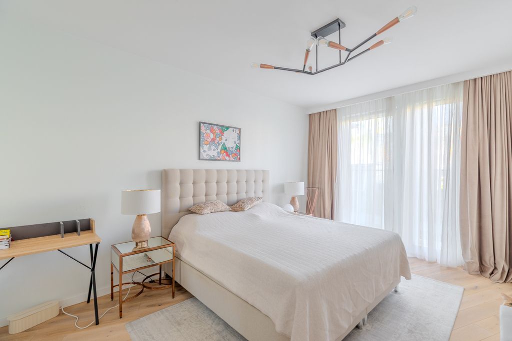 Zachwycające mieszkanie o powierzchni 91,23 m² z tarasem, położone na parterze. Salon urzeka otwartą przestrzenią i naturalnym światłem wpadającym przez panoramiczną „ścianę” okien. Wyjątkowy klimat wnętrza podkreśla ceglana ścina, dębowa podłoga, która w połączeniu z granitowym blatem w kuchni tworzy spójną i elegancką całość. Wszystkie 24 zdjęcia mieszkania znajdą Państwo na naszej stronie internetowej.Lokalizacja:Mieszkanie znajduje się w prestiżowym 4 piętrowym budynku - Linde Residence, zbudowanym w 2019 roku. W całym apartamentowcu znajduje tylko 40 mieszkań. Lokalizacja gwarantuje doskonałą komunikację – zaledwie 6 minut spacerem do stacji Metra Stare Bielan. W odległości 300 m, znajduje się wejście do Lasu Lindego, czyli doskonałe miejsce do rekreacji i spędzania czasu wolnego. W niewielkiej odległości znajdziemy malownicze uliczki Starych Bielan, takie jak słynna ulica Płatnicza. W pobliżu (400m) każdego dnia tętni życiem znany wszystkim mieszkańcom Bielan Bazar Wolumen. Nieopodal przedszkola, szkoły, kawiarnie, sklepy, restauracje, wszelkie usługi, czy place zabaw. *Apartament: Wyróżnia się wysokiej jakości wykończeniem oraz nowoczesną architekturą. Składa się z salonu, kuchni połączonej z salonem, dwóch sypialni, łazienki, garderoby, WC, holu oraz dużego tarasu. Mieszkanie jest w pełni wykończone materiałami wysokiej jakości (deska dębowa, granit, gres, włoska armatura łazienkowa). Nowoczesna zabudowa kuchenna, kuchnia została wyposażona w sprzęt AGD: zmywarkę - Bosch, piekarnik - Electrolux, płytę indukcyjną - Bosch, okap - electrolux, lodówko - zamrażarkę - LG, okap. Blat kuchenny oraz wyspy wykonany z granitu. Salon jest elegancki, a jego wystrój cechuje się świeżością. Jest to pomieszczenie, w którym można odpocząć i zrelaksować się po ciężkim dniu pracy. Podłoga we wszystkich pomieszczeniach, poza łazienką i toaletą, wykonana jest z desek dębowych. Główna sypialnia jest przestronna, dodatkowo do sypialni przylega niezależna garderoba. W sypialni znajdziemy dużą ilość szaf w zabudowie oraz wydzielone miejsce na toaletkę. W holu znajduje się kolejna duża szafa, w której znajduje się pralko - suszarka (jest miejsce na dodatkową suszarkę). Kolorystyka i materiały w sypialni nie odbiegają od tych, które zostały wykorzystane w całym mieszkaniu. Łazienka oraz samodzielna toaleta urządzone w odcieniach drewna i bieli, z dużą kabiną prysznicową w łazience.Wyróżnikiem mieszkania są duże panoramiczne okna w każdym pomieszczeniu, które sprawiają że mieszkanie jest dobrze doświetlone. Całe wnętrze jest przytulne, przestronne oraz starannie przemyślane pod względem funkcjonalności oraz poczucia komfortu dla jego mieszkańców. Każdy element wystroju i wyposażenia ma swoje określone miejsce i zastosowanie. Mieszkanie ma bardzo praktyczny rozkład, dodatkowym atutem jest to, że okna mieszkania są skierowane na trzy strony świata (salon, kuchnia wychodzą na południe oraz zachód, sypialnie na północ) przez co w okresie letnim doskonale się wentyluje. Całe wnętrze jest nowoczesne, funkcjonalne, przemyślane.Do mieszkania przynależy miejsce postojowe w garażu podziemnym, płatny dodatkowo – 80 000 zł. Czynsz administracyjny wraz zaliczkami na wodę i ogrzewanie - 1 200 zł. Zapraszamy do kontaktu i osobistego odkrycia wszystkich atutów tego wyjątkowego mieszkania.
