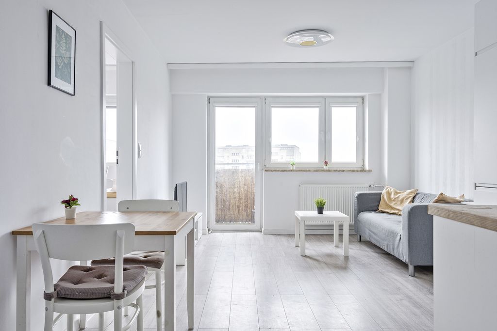 - Salon z aneksem kuchennym. Z salonu wyjście na balkon o powierzchni ok. 1m2.