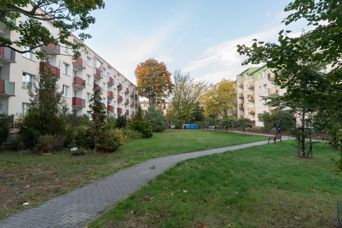 Okolica jest urokliwa. Przestrzenie między blokami wypełnione są terenami zieleni. Z mieszkania rozpościera się piękny widok na centrum Warszawy.
