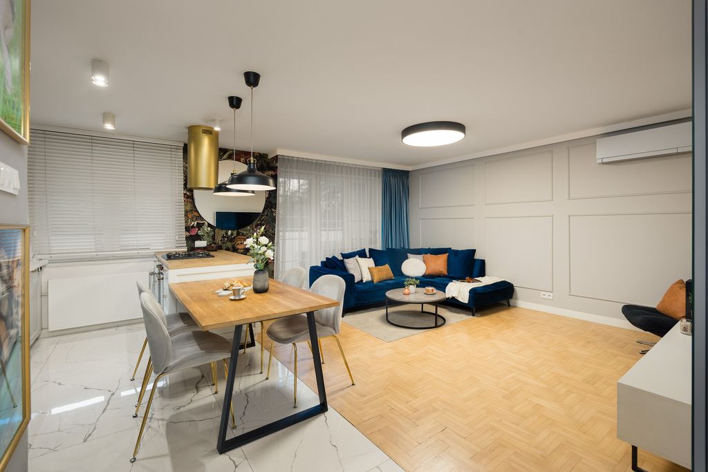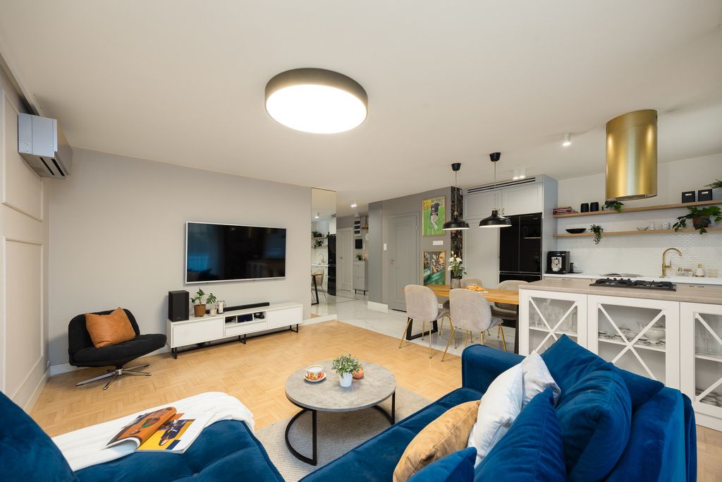 W 2020 roku mieszkanie przeszło generalny remont – wymieniono wszystkie instalacje, odnowiono ściany, podłogi i stolarkę. Zastosowano wysokiej jakości materiały, a ściany częściowo pokryto eleganckimi okładzinami. W salonie zainstalowano klimatyzację.