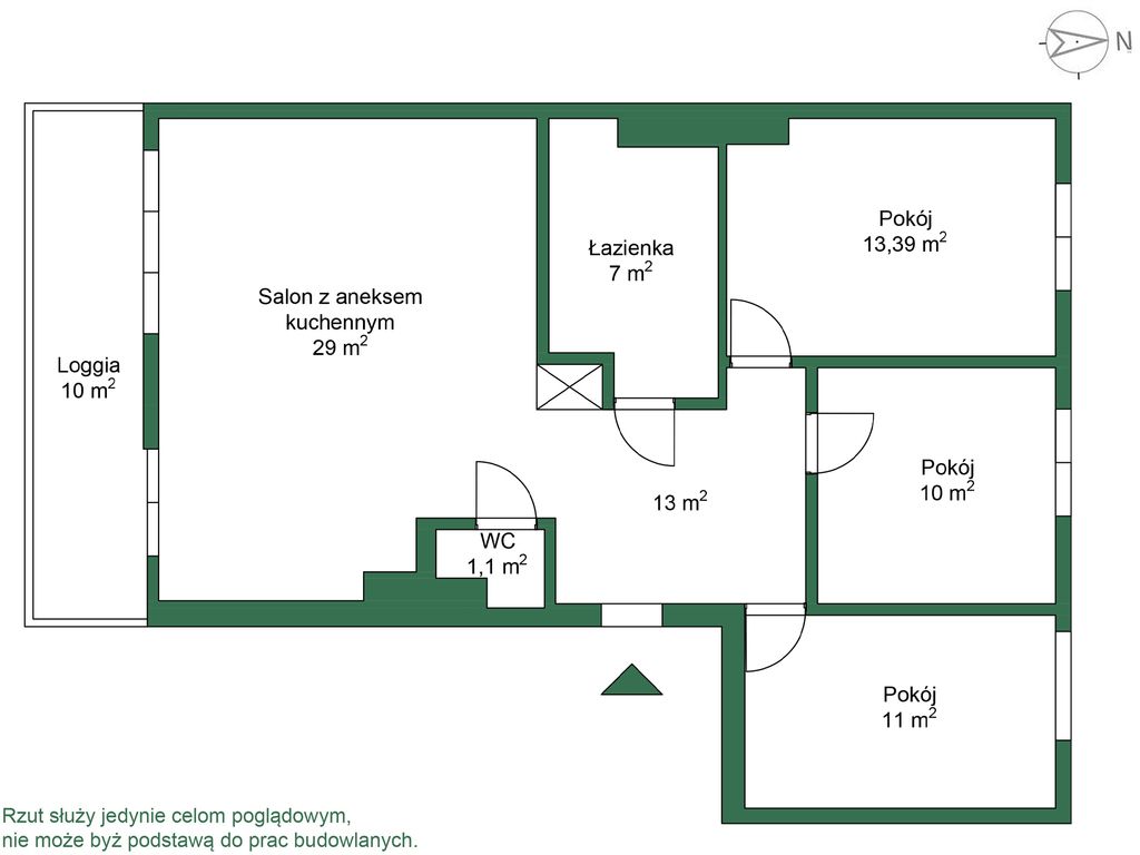 - Trzy ustawne sypialnie(13 m2 10 m2 11 m2)