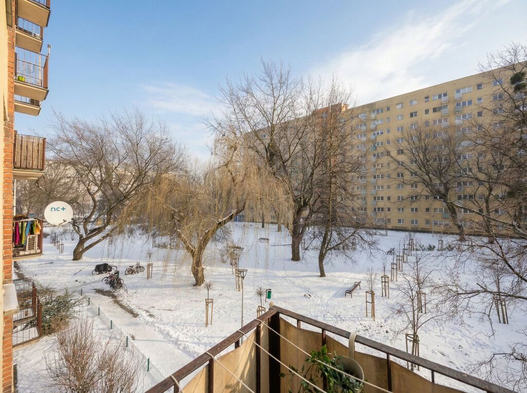 okna mieszkania wychodzą na ciche i zielone podwórko, bez odgłosów ulicy.