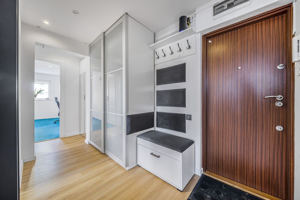 - Przedpokój: Funkcjonalny, z pojemną szafą w zabudowie.