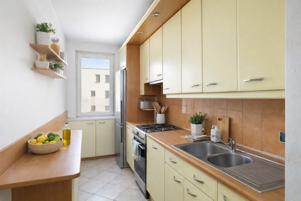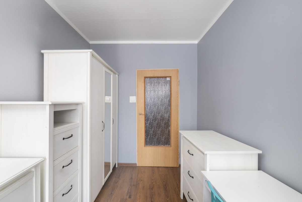 Mieszkanie jest do odświeżenia, co daje przyszłemu właścicielowi możliwość aranżacji według własnych potrzeb i stylu.