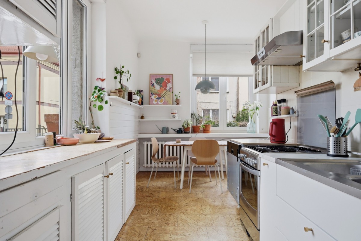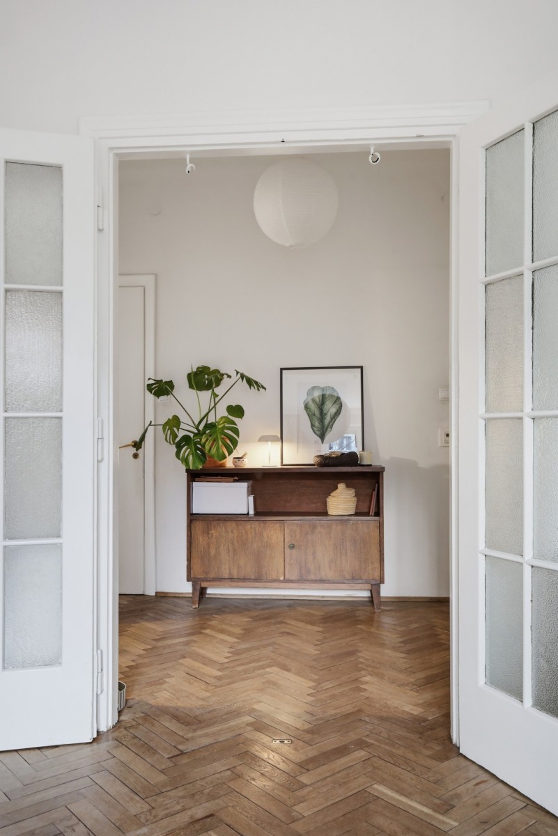 W mieszkaniu zachowane stare stolarki drzwiowe, a także parkiet w jodłę francuską.