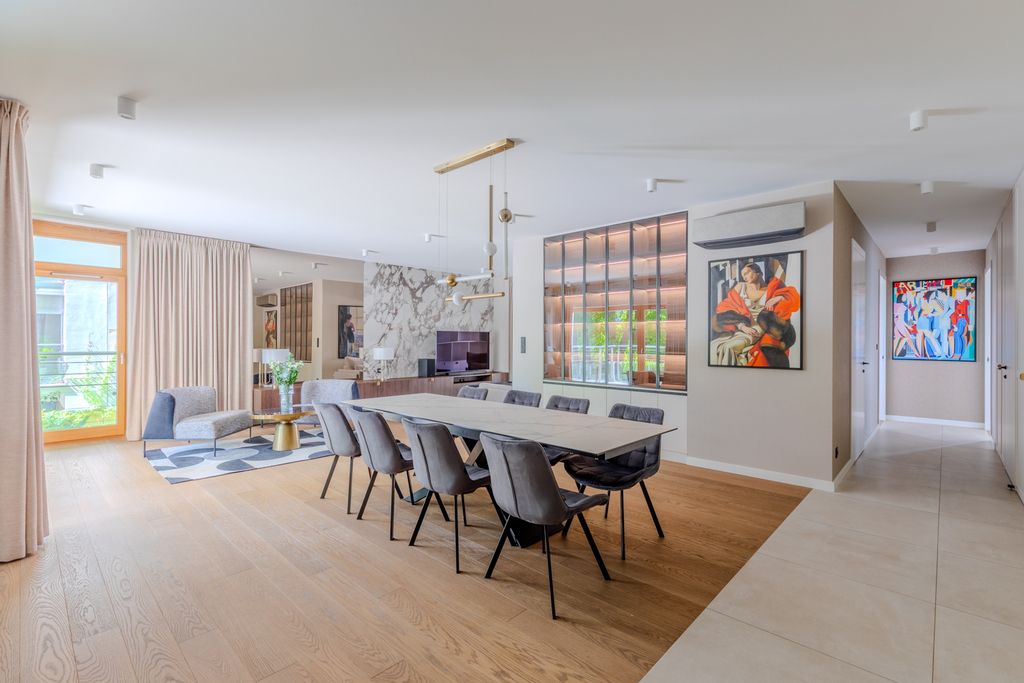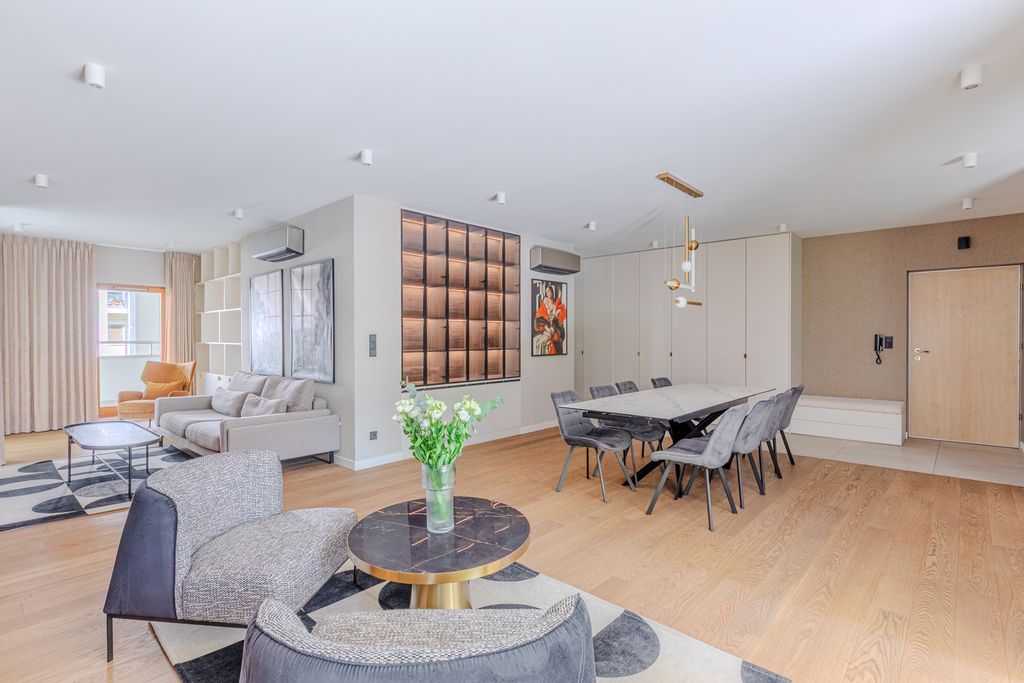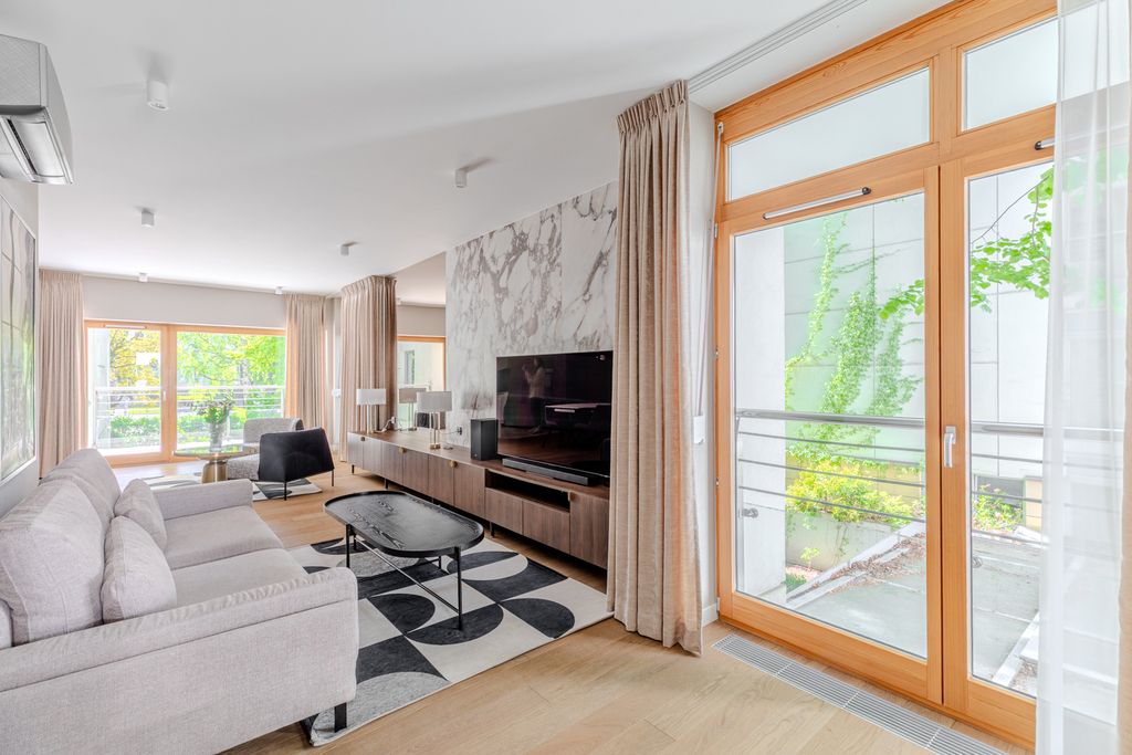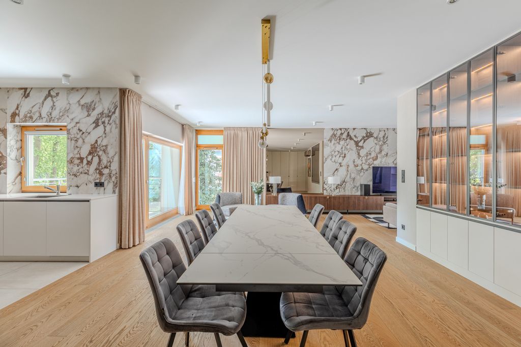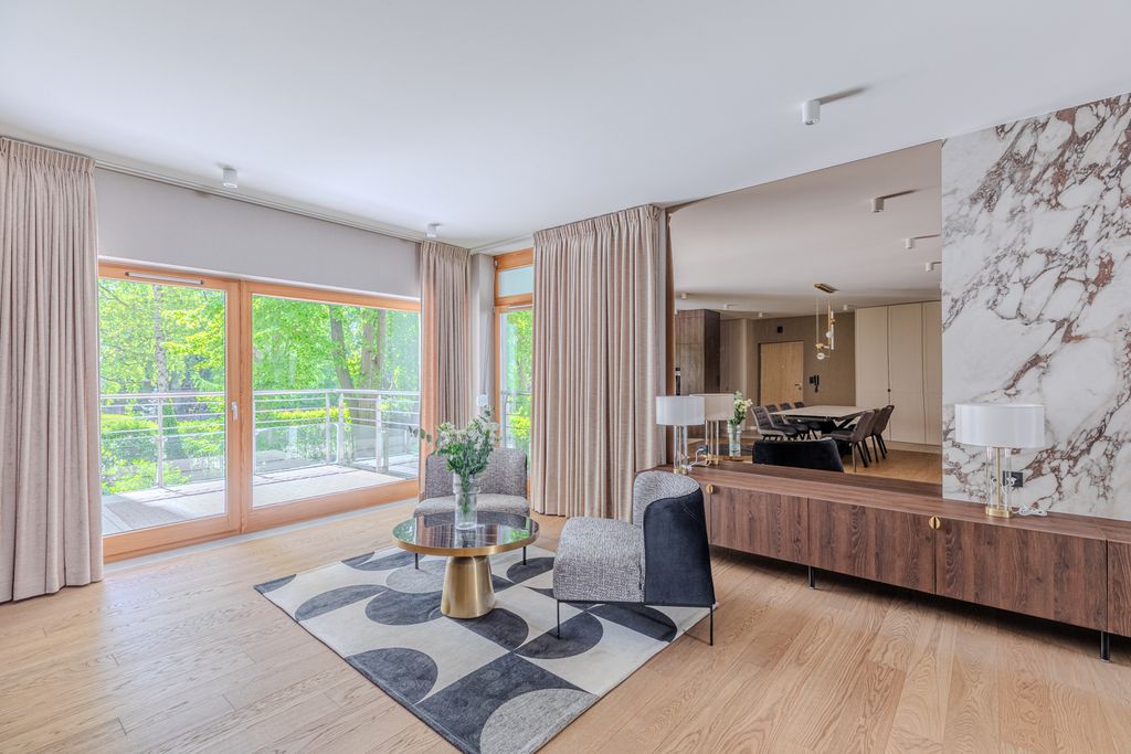 Wyjątkowy apartament położony na prestiżowym osiedlu Eko Park przy ulicy Biały Kamień 8. Komfort i funkcjonalność w połączeniu z najwyższą jakością wykończenia i umeblowania tworzą niepowtarzalne wnętrza urzekające klimatem. Doskonały rozkład apartamentu, panoramiczne okna, spokojne sąsiedztwo oraz zadbana zieleń na terenie osiedla gwarantują wspaniałe warunki do mieszkania, oraz wypoczynku. Lokalizacja tuż przy Polach Mokotowskich, bardzo dobry dojazd do centrum to również niewątpliwe atuty tego mieszkania. Apartament jest gotowy do wprowadzenia - sprzedawany z pełnym wyposażeniem i umeblowaniem.Wszystkie zdjęcia apartamentu, film nieruchomości znajdą Państwo na naszej stronie. *APARTAMENT:Apartament z wyraźnym podziałem na trzy części: salon z jadalnią, czyli część wspólna, rodzinna, po prawej stronie część "dziecięca"czyli dwie sypialnie i łazienka, po lewej stronie część dla dorosłych - sypialnia główna, gabinet i łazienka. Taki układ pomieszczeń zapewnia funkcjonalność i jednocześnie prywatność każdemu członkowi rodziny. Apartament składa się z:- przestronnego, jasnego salonu z wyraźnie zaznaczonymi częściami wypoczynkową i jadalnianą. * część wypoczynkowa z wygodną kanapą, fotelami i stolikami, rzędem niskich szafek i otwartym regałem, wyposażona w zestaw tv. Charakteru tej części mieszkania dodaje ściana - połączenie naturalnego kamienia i ogromnego przydymionego lustra. * część jadalniana z dużym stołem (rozkładanym) z kamiennym blatem, wygodnymi krzesłami i ścianą podświetlanych przeszklonych witryn w zabudowie Z salonu wyjście na loggię.Te części apartamentu posiadają zainstalowaną klimatyzację.- kuchni z oknem, otwartej na część jadalnianą salonu- sypialni głównej z przynależną do niej przestronną garderobą z podświetlanymi półkami; sypialnia wyposażona w tv; Z sypialni wyjście na loggię.- gabinetu z zestawem regałów w zabudowie i dużą rozkładana kanapą (oczywiście gabinet może pełnić funkcję sypialni np. gościnnej - w zależności od potrzeb )- łazienki z wygodną, dużą wanną, kabiną prysznicową, ścianą szafek w zabudowie; łazienka przestronna, jasna- sypialni z małą garderobą; w sypialni regał w zabudowie, biurko, łóżko z pojemnikiem na pościel, okna na całej jednej ścianie - sypialni wyposażonej w pojemną szafę w zabudowie, biurko, regał, zestaw kubikowych szafek, łóżko z pojemnikiem na pościel; z tej sypialni dostępna jest loggia- łazienki z wanną i kabiną prysznicową- pomieszczenia tzw. gospodarczego z pralką i suszarką , szafą w zabudowie z licznymi pólkami np. na środki czystości itp.; to pomieszczenie pełni też funkcję dodatkowej łazienki - wc.- korytarz - wzdłuż całego mieszkania z rzędem zabudowanych szaf (drążki, półki - część półek wysuwana, szuflady); zapewniają ogromną ilość miejsca do przechowywania Apartament jest kompletnie umeblowany i wyposażony Kuchnia: sprzęt agd: płyta elektryczna, piekarnik z funkcją mikrofalówki, podwójna lodówka,, zmywarka, wygodne półki/ szuflady typu cargo - bardzo ułatwiają pracę w kuchni.Salon z obszerną kanapą, wygodnymi fotelami i sprzętem tv zachęca do wypoczynku.Jadalnia zapewnia miejsce na zjedzenie posiłków dla całej rodziny lub przyjmowania gości.. W sypialniach wygodne łóżka, szafy, półki - wszystko co niezbędne do wypoczynku, pracy, nauki. Każda łazienka z wanną i odrębną kabiną prysznicową; każde wc z funkcją bidetu.Apartament wykończony naturalnymi materiałami wysokiej jakości: na podłogach deski dębowe i gres; ściany wyłożone tapetami - w połaczeniu z ogromnymi taflami naturalnego kamienia i lustrami nadają wnetrzom niepowtarzalnego charakteru.Aranżacja apartamentu bardzo przemyślana; nowoczesność, elegancja, dbałość o spójność i jednolitość wnętrz, a jednocześnie wygodę mieszkańców widoczna w najdrobniejszych szczegółach: jasna, pastelowa kolorystyka, wygodne meble, umiejętnie dobrane dodatki( np. lampy, żyrandole, obrazy, dywany, podświetlane lustra ), zróżnicowane oświetlenie - wszystko to sprawia, że wnętrze jest przytulne i miłe, a jednocześnie funkcjonalne i wygodne. Apartament cechuje doskonała jakość w połączeniu z wygodą, przestronnością, funkcjonalnością - wnętrza zachęcają do zamieszkania.Niewątpliwym atutem apartamentu sa tez trzy loggie z widokiem na zieleń - doskonałe miejsca na popołudniową kawę czy wieczorne wino.Do apartamentu przynależą dwa miejsce postojowe w garażu podziemnym oraz komórka lokatorska dodatkowo płatne 200 000 zł.BUDYNEK:Bardzo wysoki standard osiedla: niska zabudowa, całodobowa ochrona, różnorodna, wypielęgnowana zieleń, cisza i spokój. Osiedle zaprojektowane z myślą o estetyce budynków i wygodzie i komforcie mieszkańców. Zadbano także o wysoką jakość wykończenia części wspólnych - drewno, kamień. LOKALIZACJA:Eko-Park to kompleks nowoczesnych apartamentowców w niskiej zabudowie; jest to niewątpliwie jedna z najbardziej prestiżowych lokalizacji na mapie Warszawy. Położenie osiedla czyli bezpośrednia bliskość największego parku Warszawy -Pól Mokotowskich, niewielka odległość do centrum miasta i na lotnisko, sprawiają, ze jest to jedną z najbardziej poszukiwanych lokalizacji w stolicy. W najbliższej okolicy znajdują się liczne kawiarnie i resturacje, szkoły i przedszkola, również liczne sklepy. Dojazd do centrum Warszawy zajmuje maksymalnie 10 minut, a w pobliżu dostępne są przystanki tramwajowe, autobusowe oraz stacja metra Pole Mokotowskie.Warunki nabycia:- apartament o powierzchni 180 m2 - 5 800 000 zł- dwa miejsca postojwe w garażu podziemnym oraz komórka lokatorska ( 5 m2 ) - 200 000 złZapraszam do kontaktu.Film -- YouTube: https://www.youtube.com/shorts/o7cjUzgnjC0