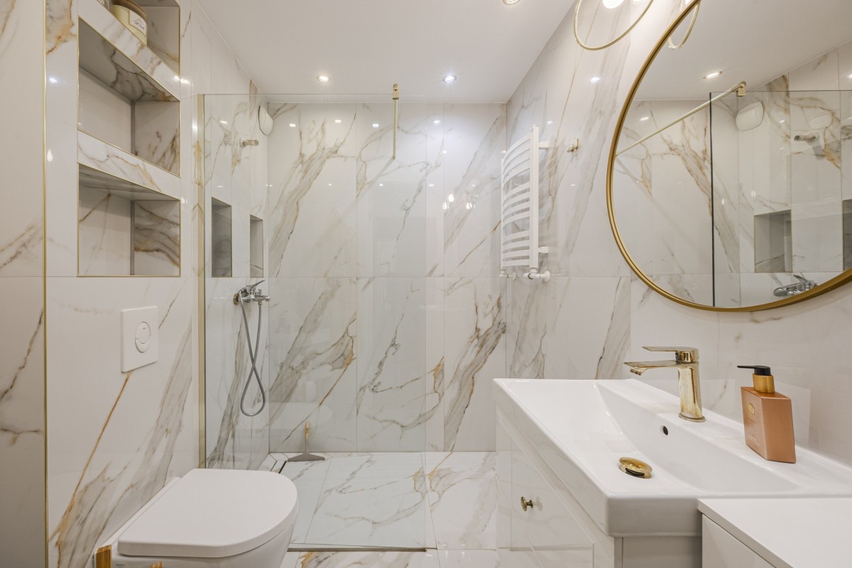 * łazienki z prysznicem typu walk‑in,