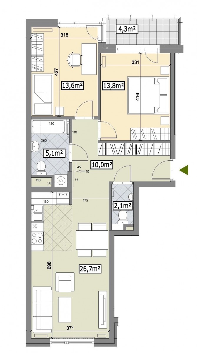 - Dwie sypialnie z bezpośrednim wyjściem na loggie - to miejsca stworzone do odpoczynku i regeneracji,