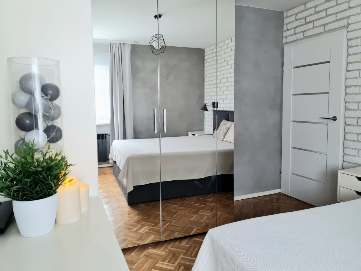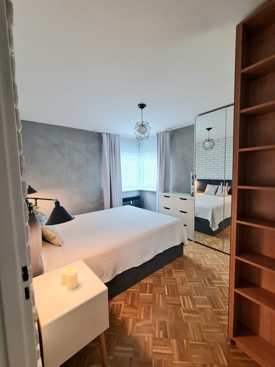 Przestrzeń 61,5 m² została zaprojektowana przez architekta wnętrz tak, by łączyć styl z codzienną funkcjonalnością. Parkiet po cyklinowaniu (2020) w świetnym stanie, a ściany o różnych strukturach, kolorystyka współgrająca ze sobą w całym mieszkaniu.