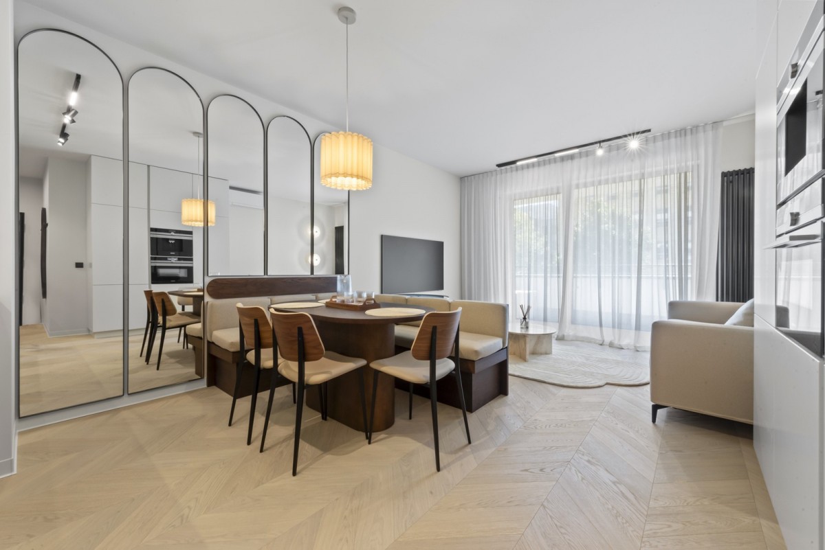 Apartament znajduję się w jednej z najbardziej pożądanych części Warszawy. To miejsce doskonale łączy w sobie komfort życia w mieście z poczuciem prywatności i przestrzeni.
