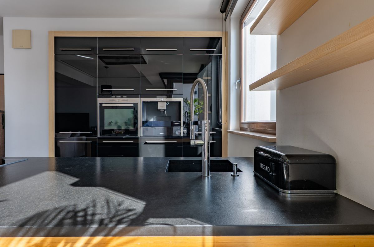 - W części dziennej znajduje się przestronny, doskonale doświetlony salon z dużymi oknami i aneksem kuchennym, z wyjściem na taras od strony południowej