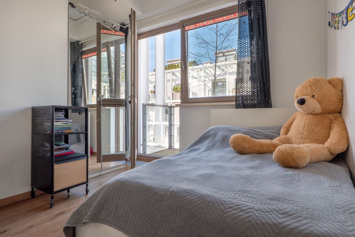 - Część nocna to trzy sypialnie położone po przeciwległej stronie mieszkania - każda z dostępem do własnego balkonu. Jedna z nich - master bedroom - posiada dodatkowo prywatną łazienkę, garderobę i pralnię, tworząc komfortową, zamkniętą strefę prywatną
