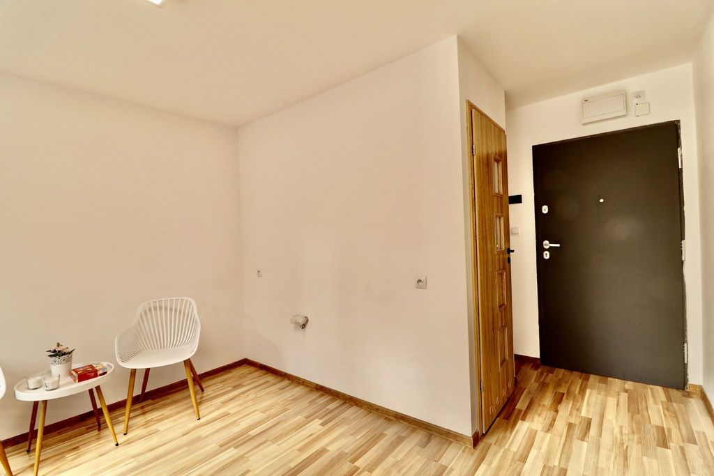 - Kompaktowe i funkcjonalne wnętrze: Lokal składa się z przestronnego pokoju z miejscem na aneks kuchenny oraz oddzielnej, świeżo wykończonej łazienki.
