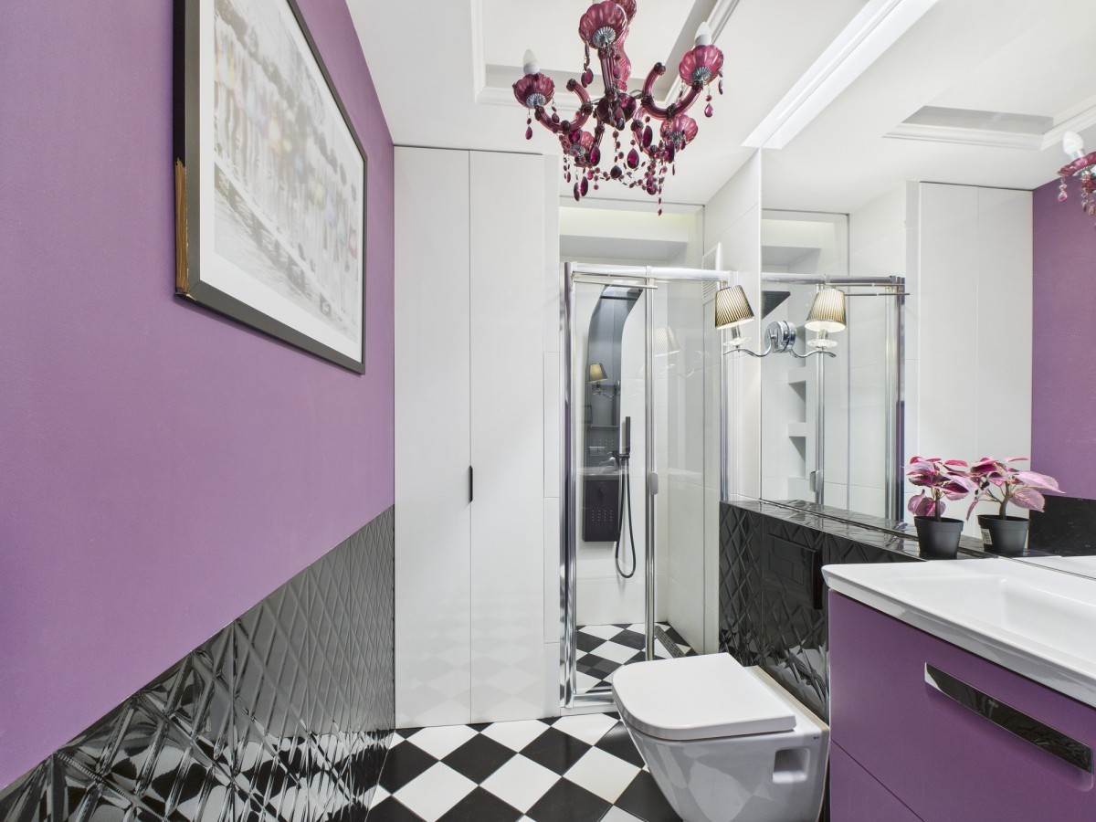 ◽ Łazienka z kabiną prysznicową typu walk-in oraz szafą na pralkę w zabudowie