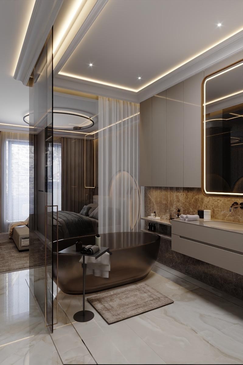 - trzech luksusowych sypialni z odrębną garderobą i łazienką