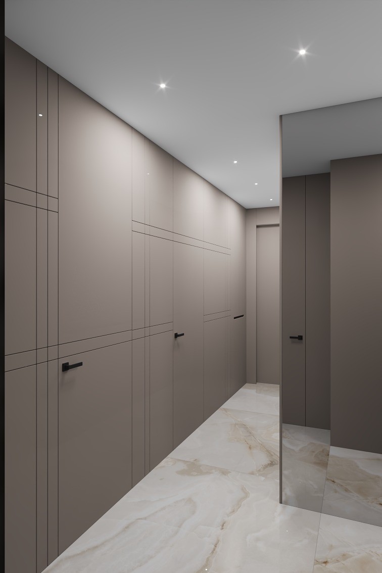 Obecnie apartament został wykończony zgodnie z projektem do stanu gotowego, przed zabudową stałą, białym montażem oraz umeblowaniem.