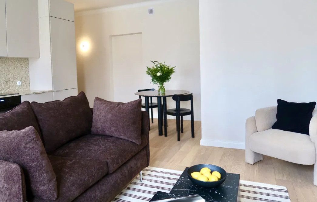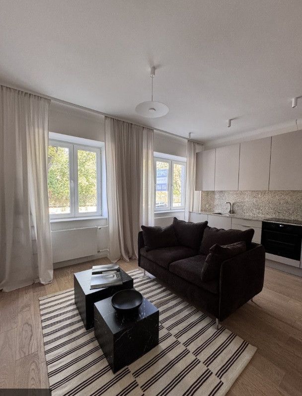 Starannie zaprojektowana przestrzeń, z dużymi oknami dają poczucie większej powierzchni. Mieszkanie zostało wykończone w bardzo wysokim standardzie, z dbałością o każdy detal. Na podłogach znajduje się dąb naturalny, a w łazience użyto eleganckich płytek ceramicznych. Blat kuchenny wykonany jest z konglomeratu kwarcowego, który doskonale łączy estetykę z funkcjonalnością. Sprzęt AGD w kuchni pochodzi od renomowanych marek, takich jak Bosch, Siemens, Electrolux i Haier, co zapewnia niezawodność i komfort użytkowania.