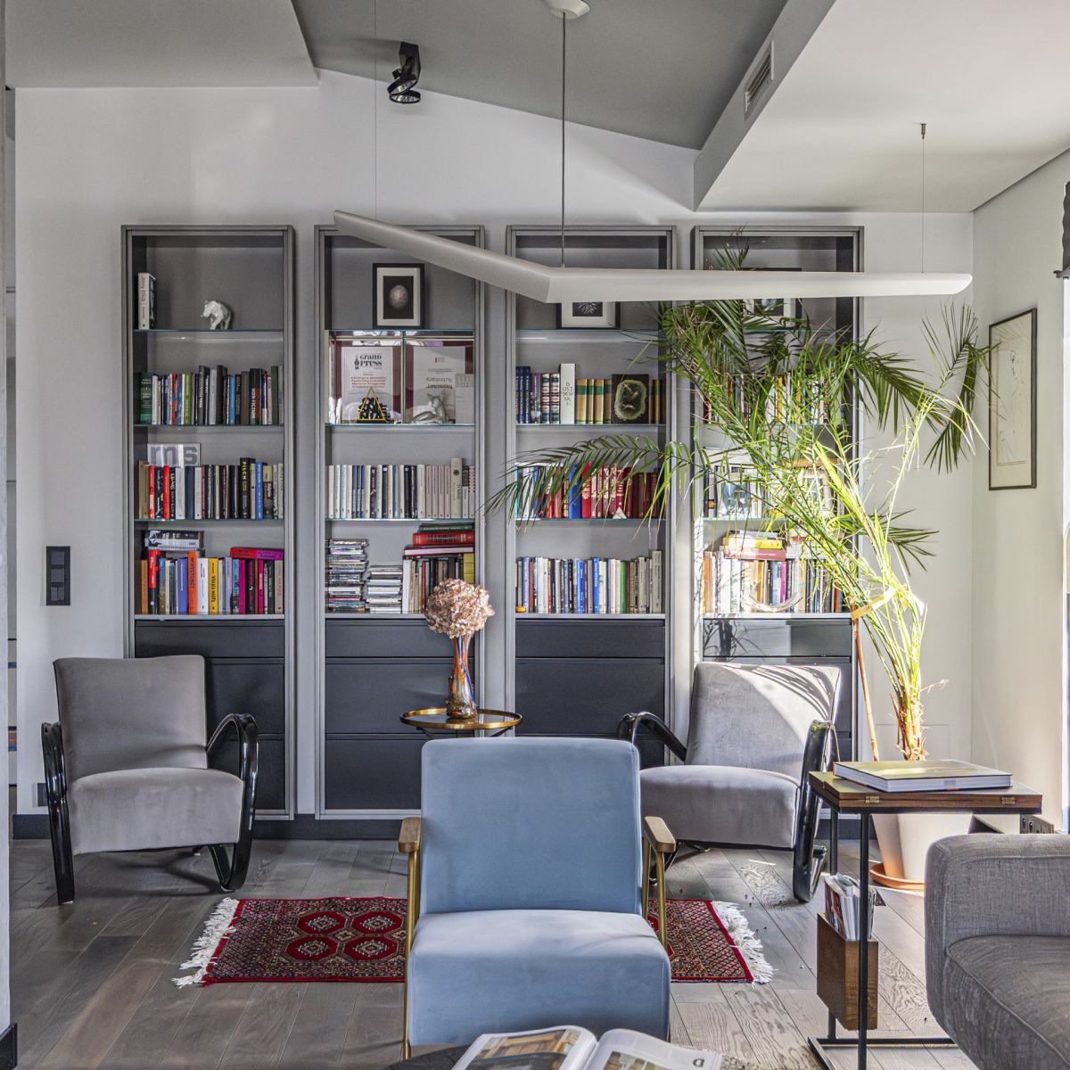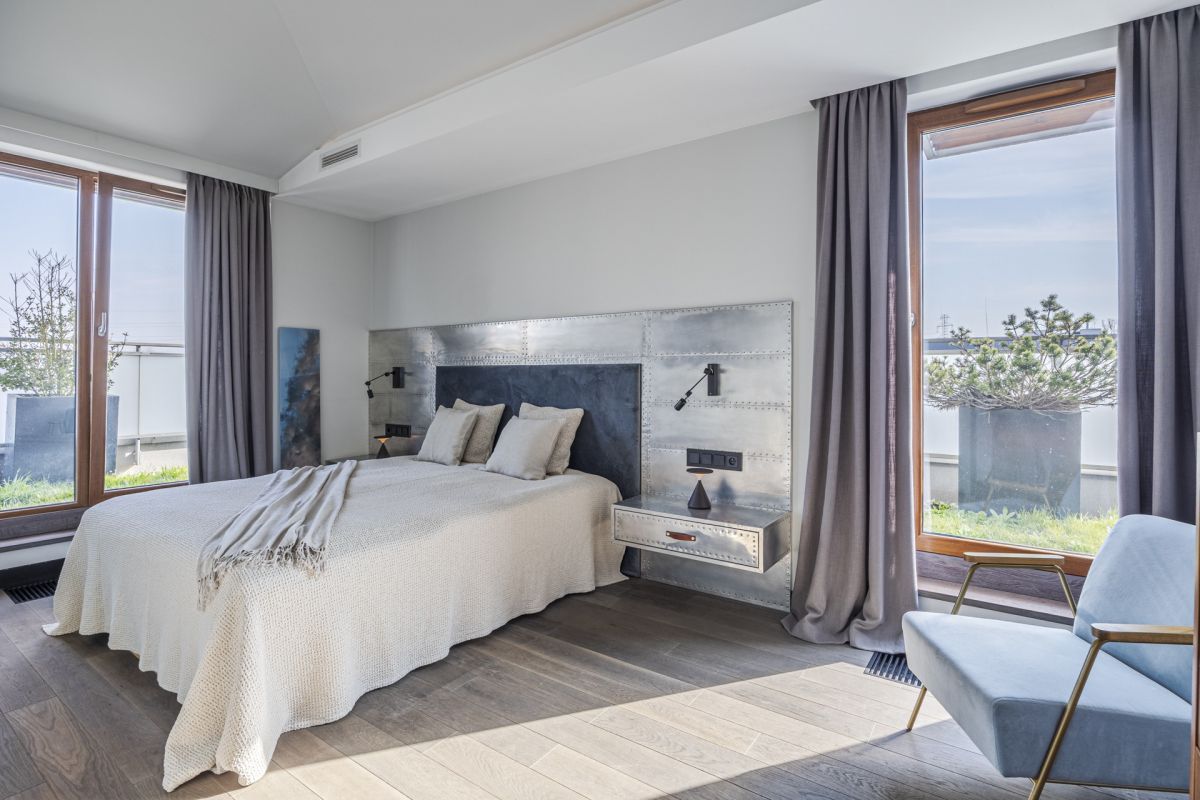 - Przestronny salon z jadalnią - z dużymi przeszkleniami i wyjściem na imponujący taras o powierzchni 100 m²