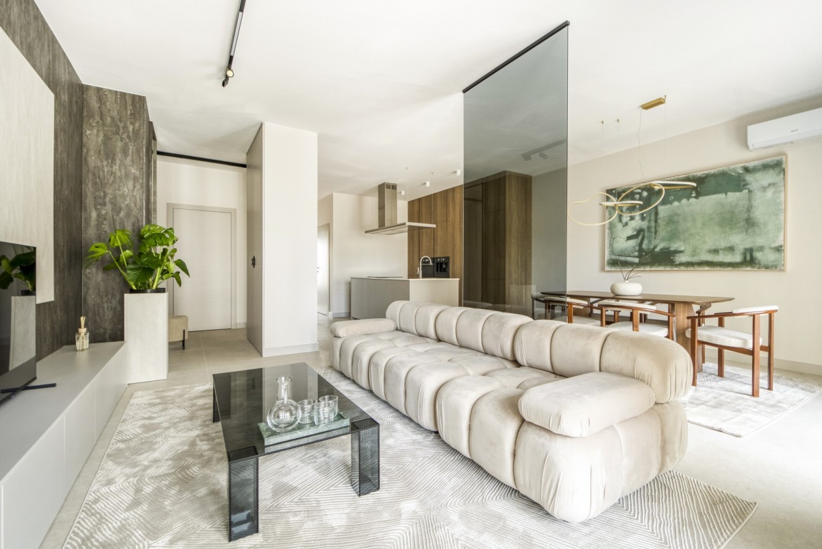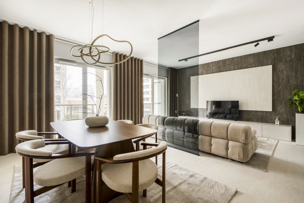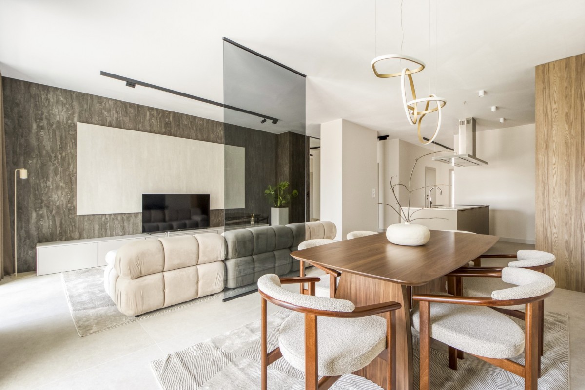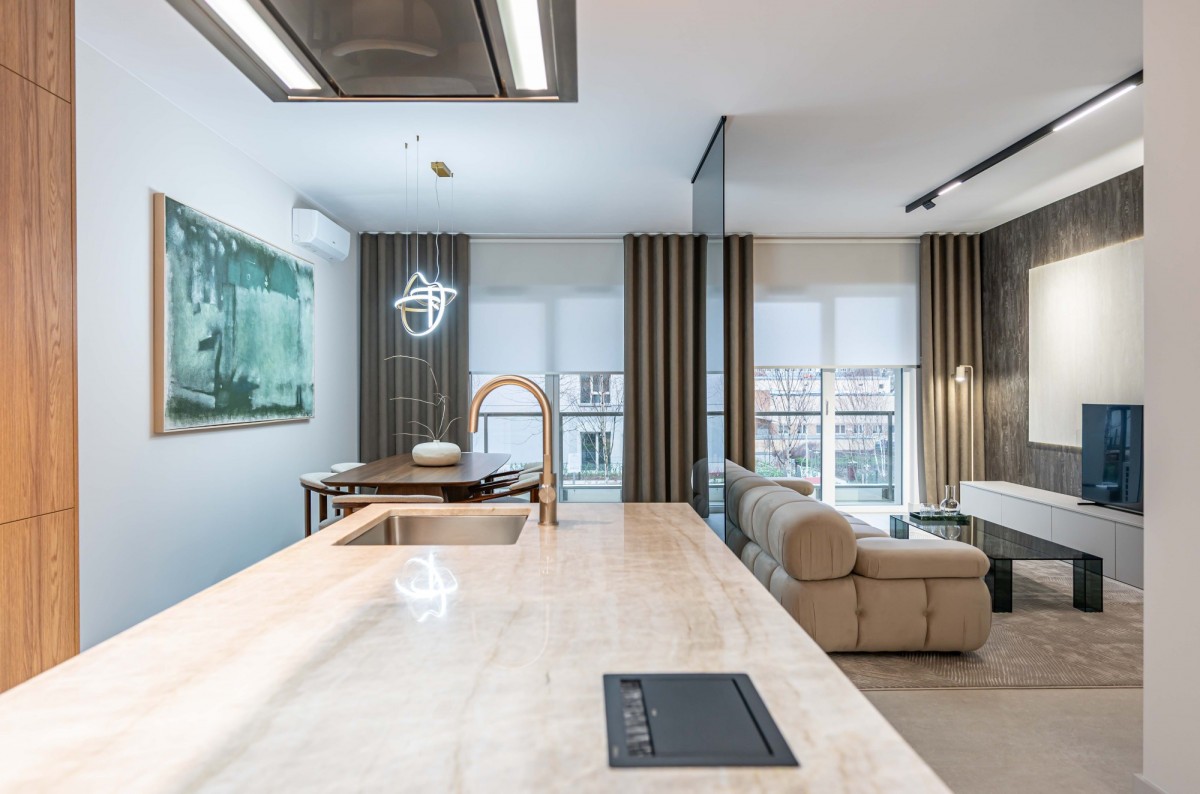 Mieszkanie zostało wykończone z dbałością o każdy detal, z użyciem materiałów klasy premium:
