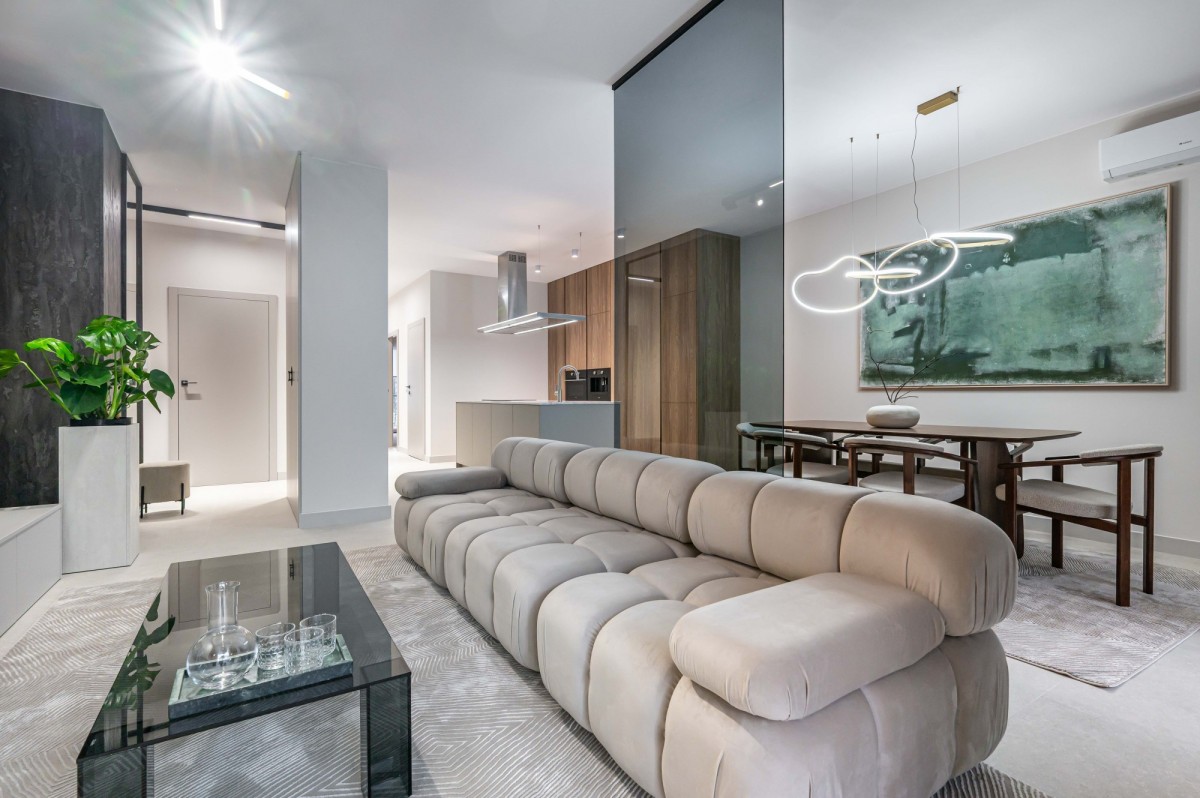 Apartament położony jest przy ul. Wołoskiej w Warszawie - w doskonale skomunikowanej części miasta, łączącej dynamiczny, miejski charakter z wygodą codziennego życia. W bezpośrednim sąsiedztwie znajdują się liczne punkty handlowo-usługowe, biura, restauracje oraz centrum handlowe Westfield Mokotów.