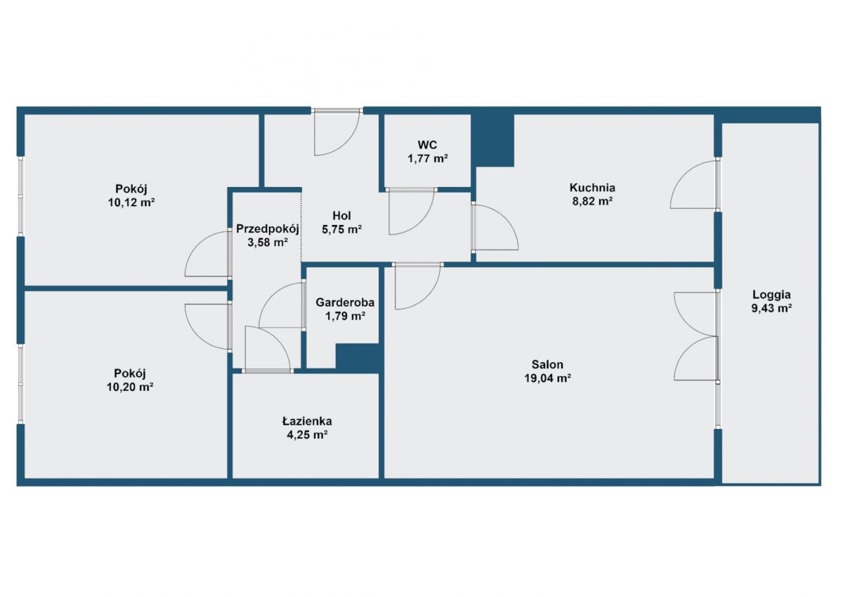 • Duża loggia o powierzchni 9,43 m²