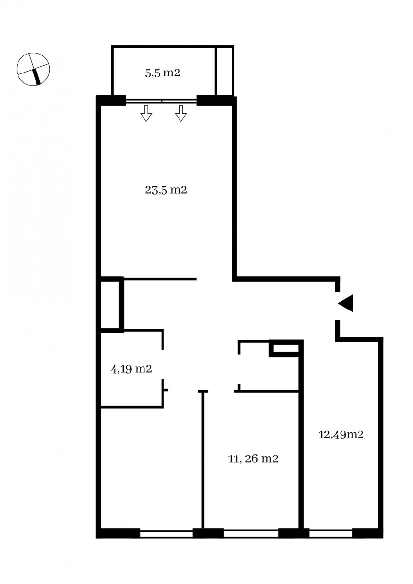 Istnieje możliwość własnej aranżacji - zniesienia nienośnej ściany i wydzielenia 4 oddzielnych pokoi oraz osobnej kuchni.