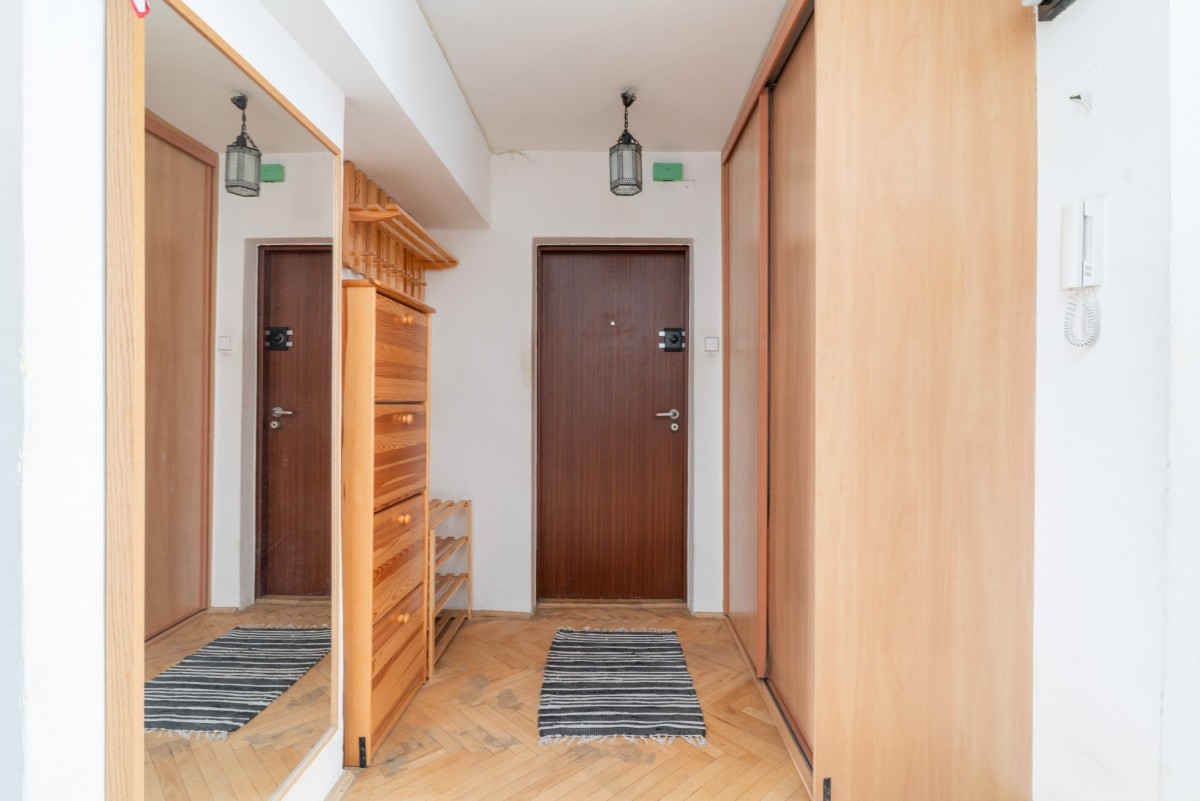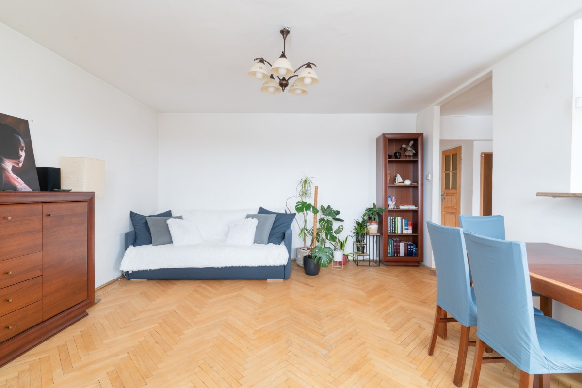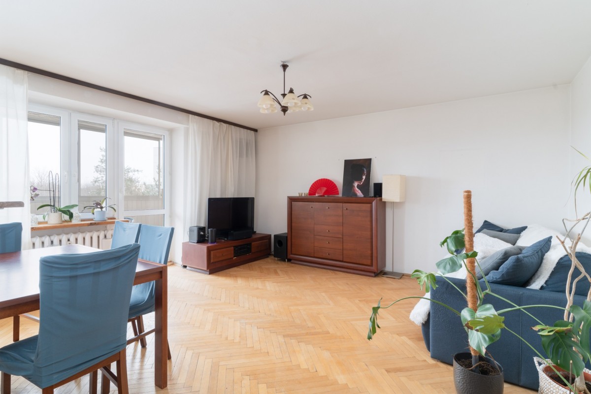 Mieszkanie jest trójstronne, dobrze doświetlone i jednocześnie ciche, oddalone od ruchliwej ulicy, w sąsiedztwie ogródków działkowych. Układ zapewnia wyraźny podział na część dzienną i prywatną. Duża loggia z wyjściem z salonu zwiększa komfort codziennego użytkowania. Lokal daje możliwość przeprowadzenia remontu lub odświeżenia zgodnie z indywidualnymi preferencjami.