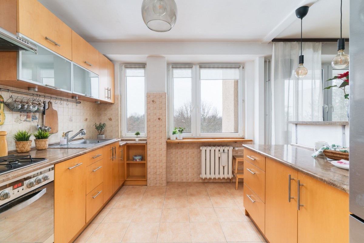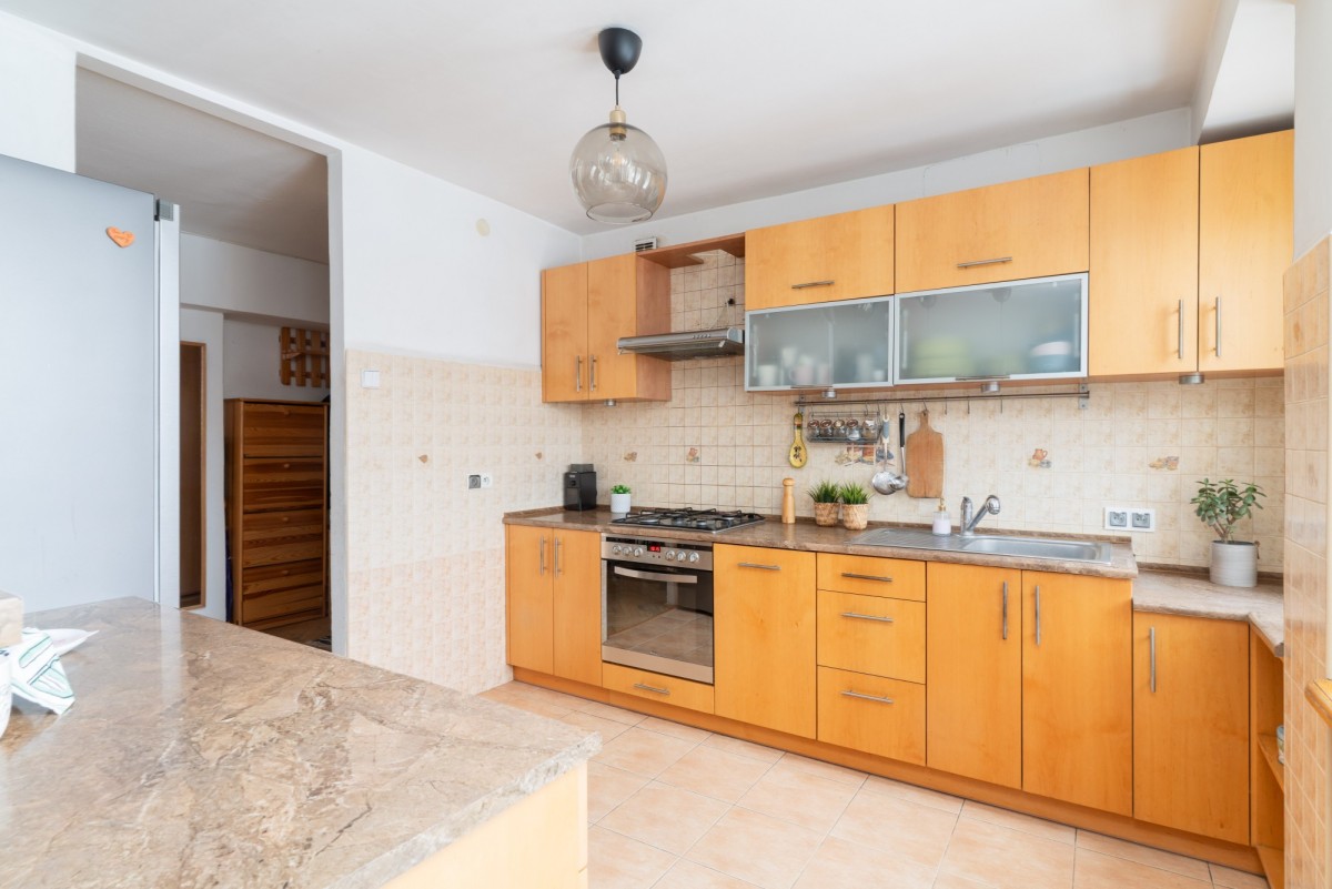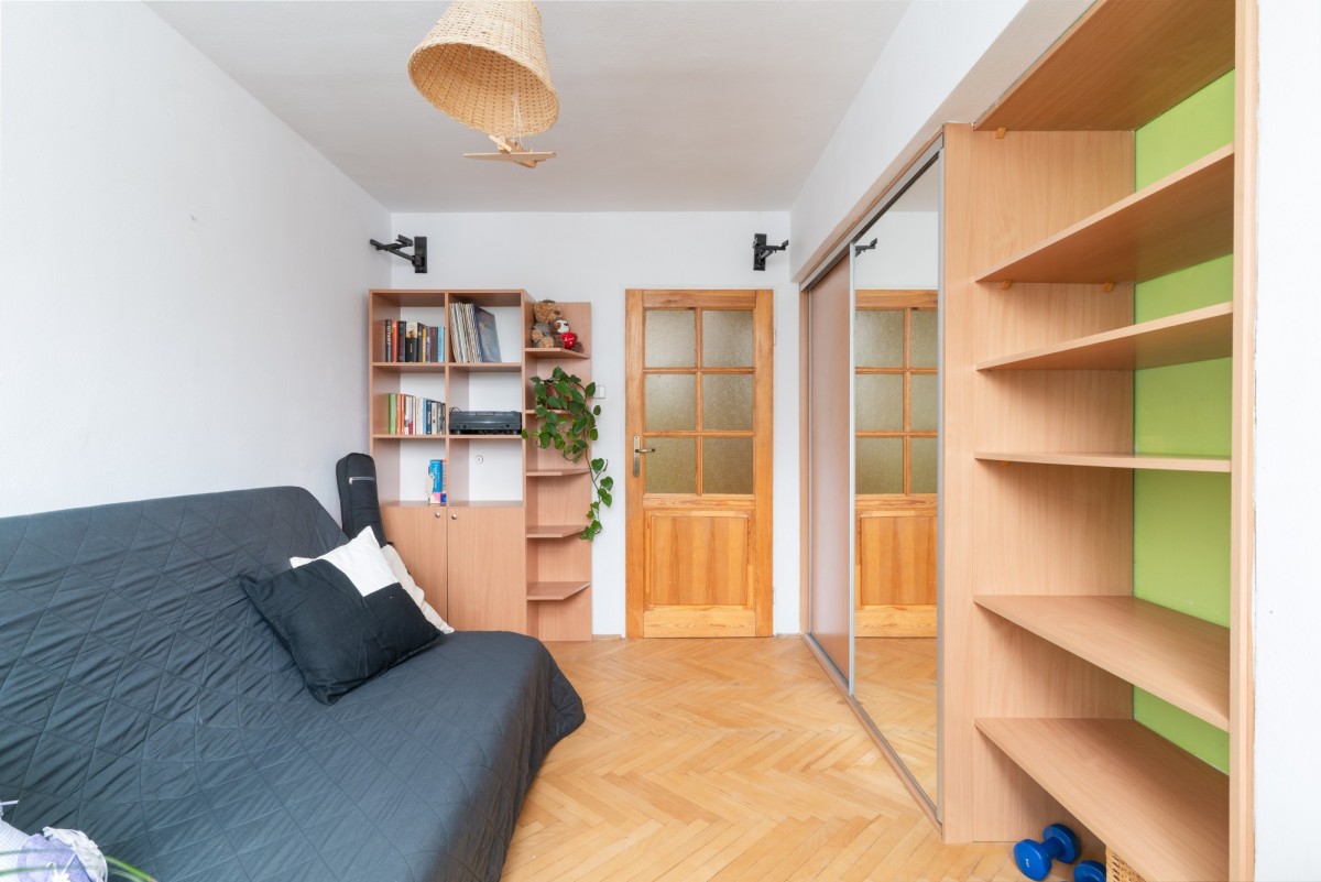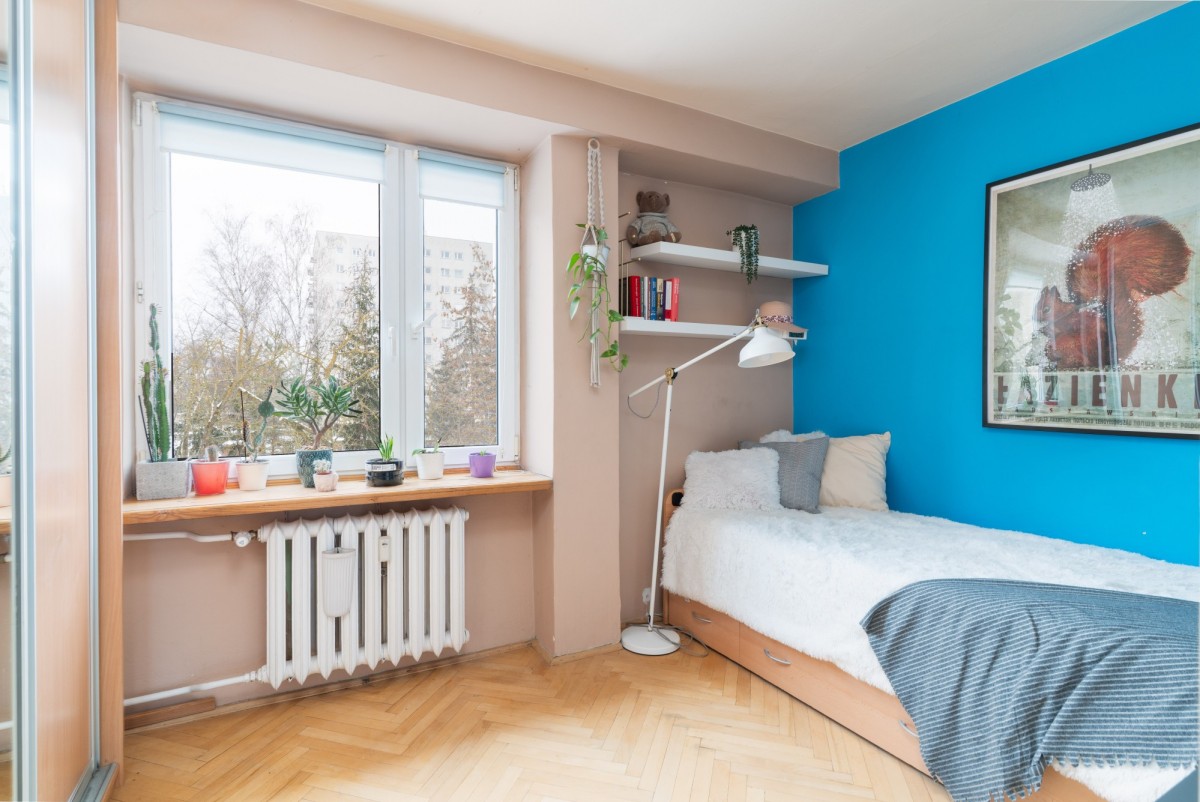 Mieszkanie jest trójstronne, dobrze doświetlone i jednocześnie ciche, oddalone od ruchliwej ulicy, w sąsiedztwie ogródków działkowych. Układ zapewnia wyraźny podział na część dzienną i prywatną. Duża loggia z wyjściem z salonu zwiększa komfort codziennego użytkowania. Lokal daje możliwość przeprowadzenia remontu lub odświeżenia zgodnie z indywidualnymi preferencjami.
