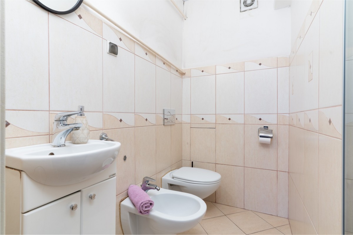 Lokal położony jest na 3. piętrze w czteropiętrowym budynku bez windy. Powierzchnia 81,3 m² obejmuje salon z częściowo otwartą kuchnią, trzy sypialnie, łazienkę z prysznicem, osobne WC z bidetem oraz przedpokój z dużą szafą w zabudowie. W pokojach na podłogach znajduje się parkiet. Do mieszkania przynależy komórka lokatorska zlokalizowana na poziomie 0.