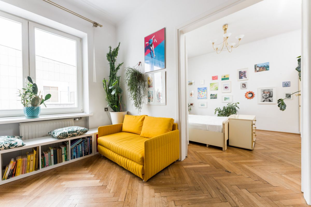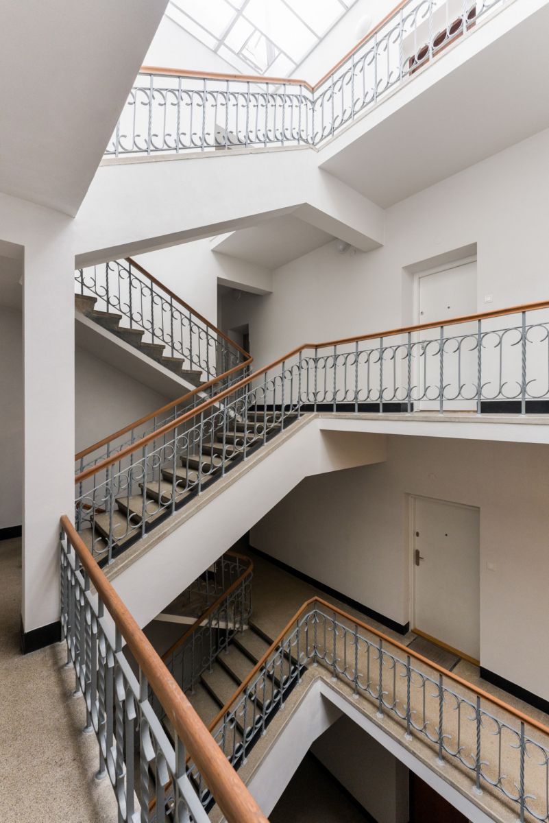 Przedwojenna kamienica z 1939 r. projektu Grzegorza Lewina, Salomona Pianko oraz Michała Ochnio, który był odpowiedzialny za powojenną odbudowę. Mieszkanie znajduje się na 4. piętrze, a kamienica jest wyposażona w windę. Wysokie piętro oraz południowa ekspozycja oferuje doskonały dostęp naturalnego światła. Wysokość pomieszczeń to 3m. Na podłogach obu pokoi znajduje się drewniany parkiet ułożony w jodłę. Główne pomieszczenia oddzielają oryginalne drzwi francuskie, które w połączeniu z wysokością, parkietem nadają prawdziwego kamienicznego klimatu całemu mieszkaniu. Drewniane okna nowej generacji.
