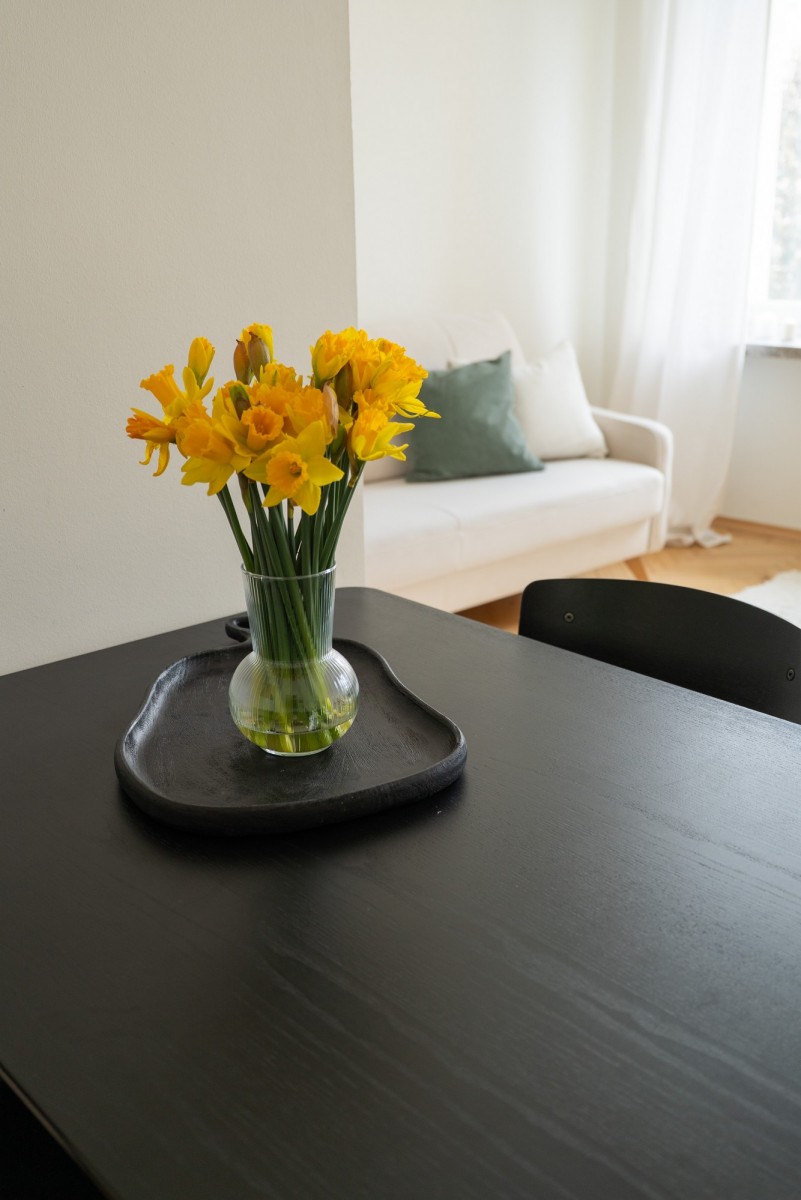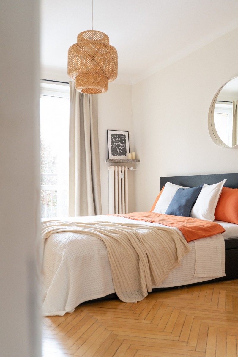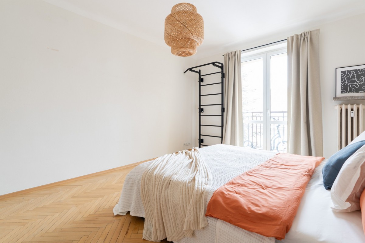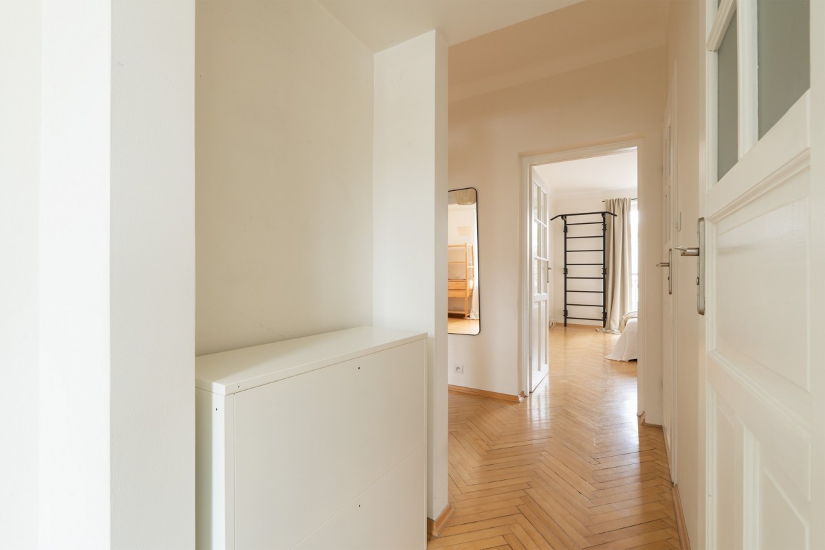 Mieszkanie zachwyca południowo-północną ekspozycją słoneczną, która zapewnia wspaniałe doświetlenie przestrzeni przez cały dzień, nawet w pochmurne dni. Jasne wnętrze z oryginalnymi drewnianymi podłogami (parkiet) tworzy autentyczny klimat, łącząc historyczny urok z funkcjonalnością i stylem.