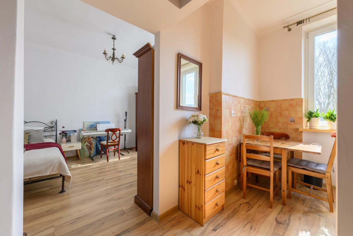 Na sprzedaż funkcjonalna kawalerka o powierzchni 28.9 m², położona na czwartym piętrze w powojennej kamienicy z windą. Mieszkanie wyróżnia się ponadstandardową wysokością (niespełna 3 m), co zapewnia poczucie przestrzeni i daje szerokie możliwości aranżacyjne.