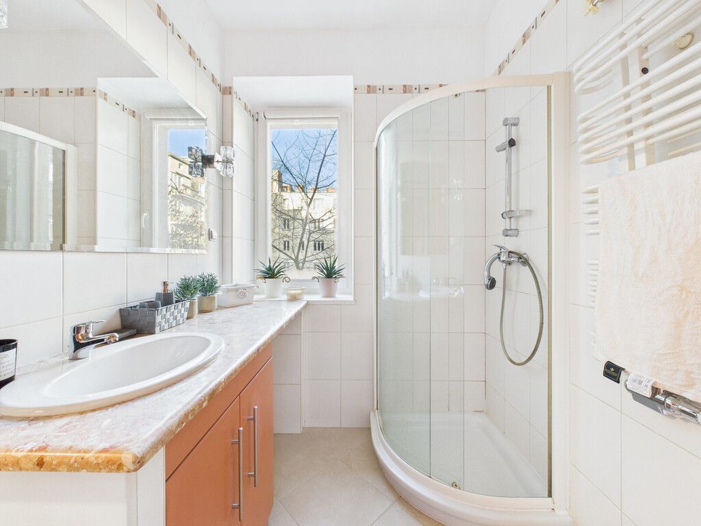 Mieszkanie zostało kilka lat temu gruntownie wyremontowane, a także odświeżone bezpośrednio przed wystawieniem go na sprzedaż. W obydwu pokojach znajduje się drewniany parkiet w dobrym stanie oraz klimatyzacja.