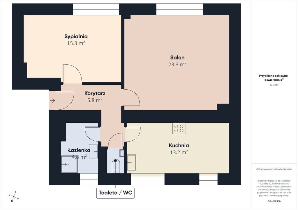 - Powierzchnia: 61.5 m2