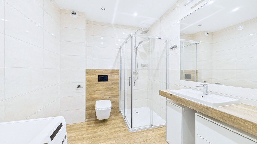 - nowoczesna łazienka w neutralnych kolorach